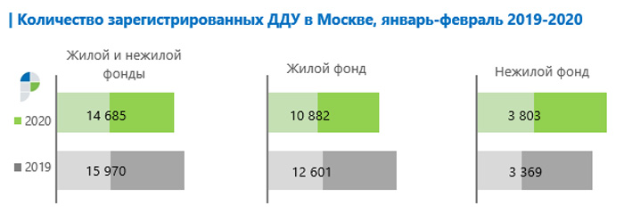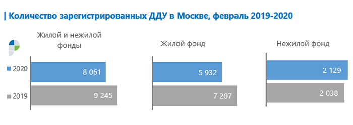 За первые два месяца 2020 года на первичном рынке жилой и нежилой недвижимости количество сделок снизилось на 8% к такому же периоду прошлого года – 14,6 тыс. против 15,9 тыс. ДДУ.