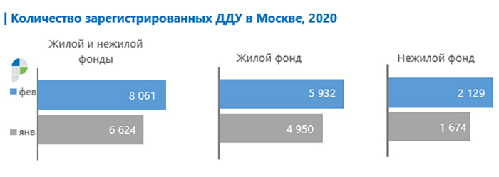 В жилищном фонде в январе-феврале зарегистрировано почти 11 тыс. договоров, что на 14% ниже показателя прошлого года. В то же время в нежилом фонде зафиксирован рост числа ДДУ на 13%.