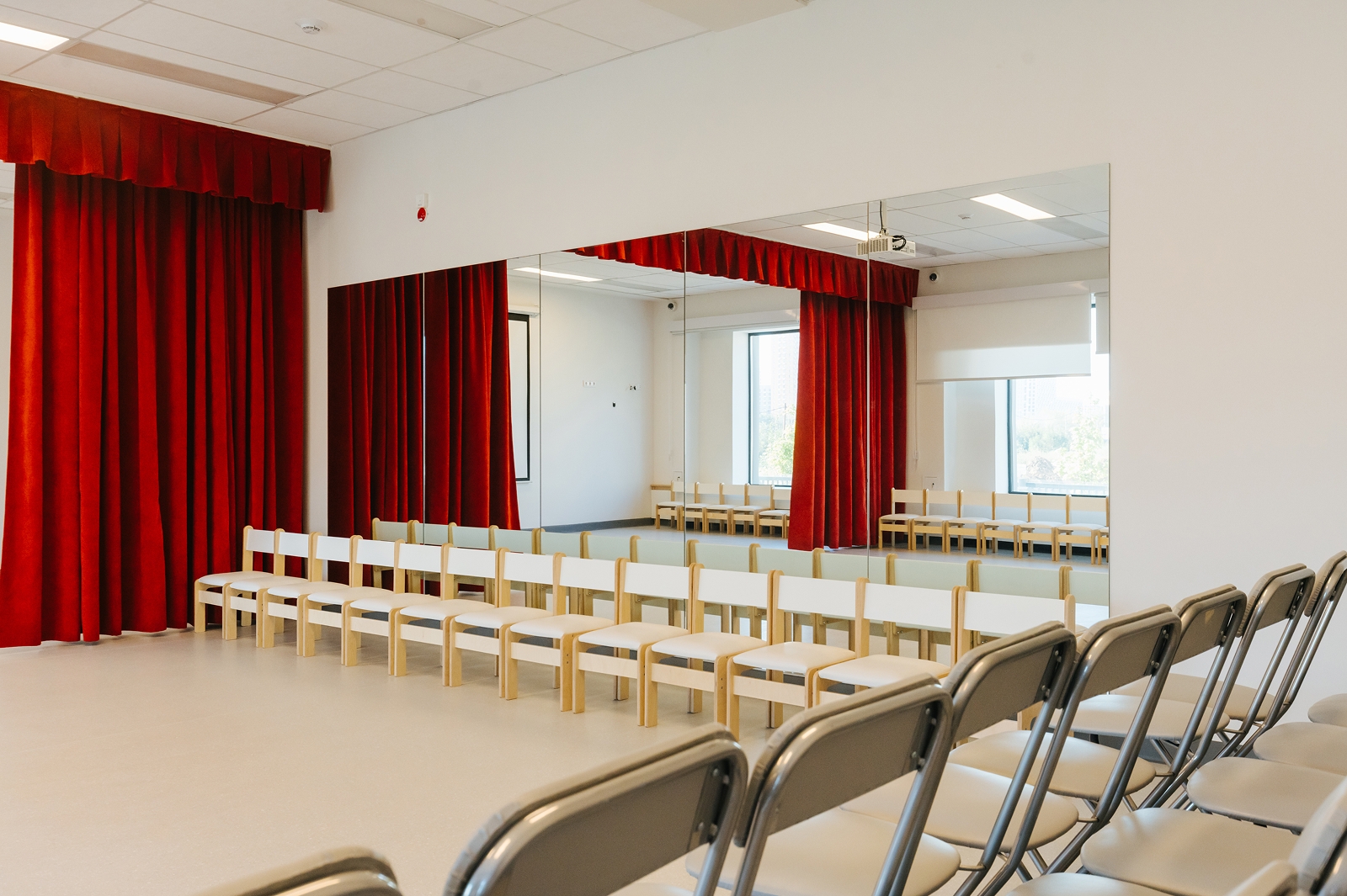 На первом этаже детского сада есть пищеблок полного технологического цикла и медпункт с процедурным кабинетом. Функциональная планировка здания обеспечивает рациональное использование полезных площадей и изоляцию групп.