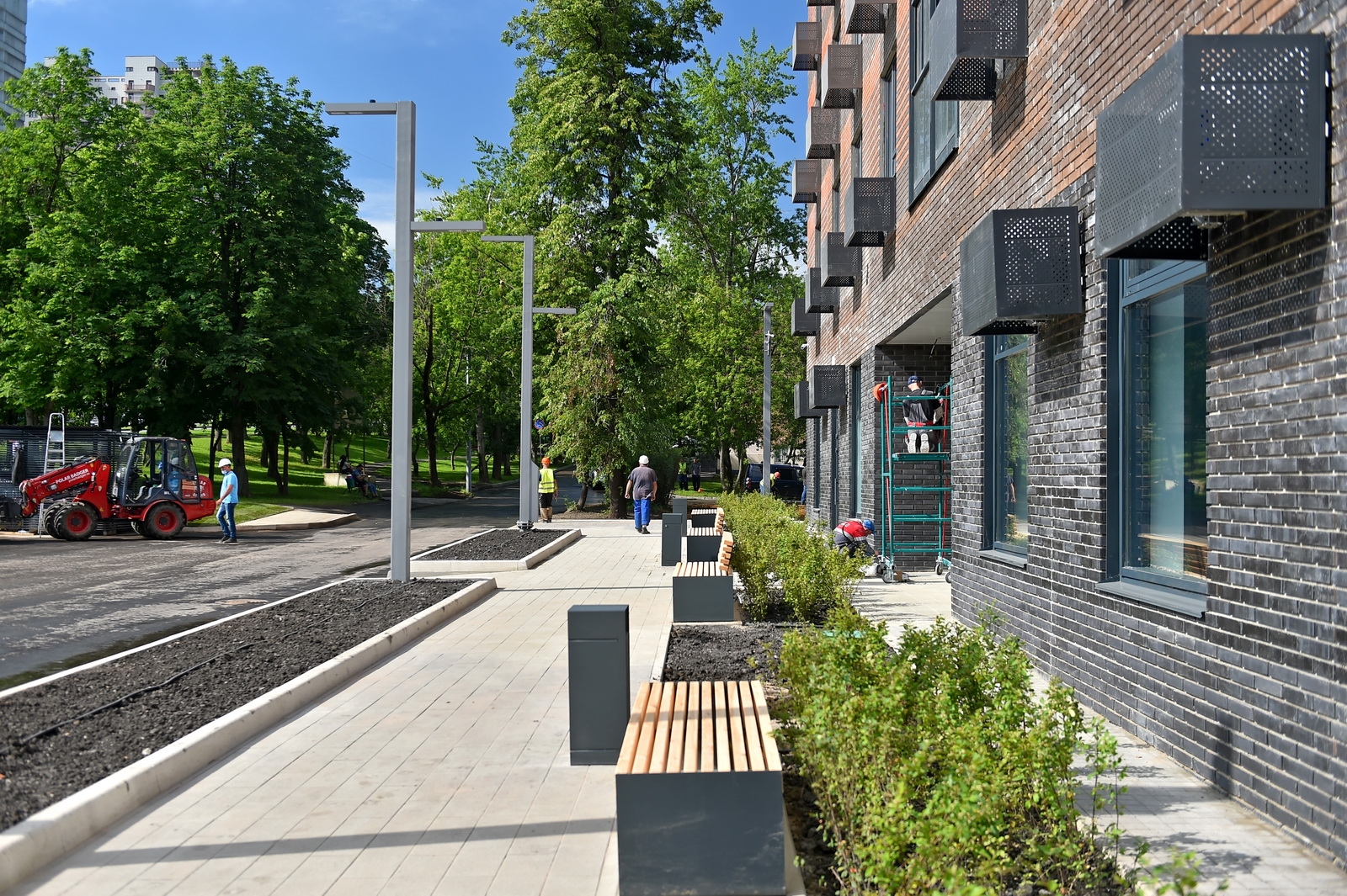 В прогулочных зонах устанавливают фонари, лавочки и урны, разбивают клумбы, высаживают деревья и кустарники. В новых кварталах найдется место и для тихого отдыха, и для активных занятий спортом.