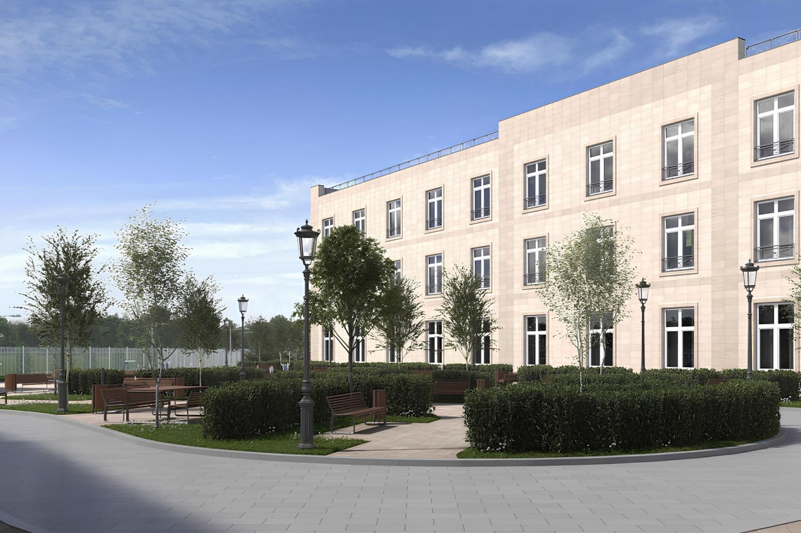 «Оно состоит из трех блоков высотой от двух до трех этажей, образующих букву «H». Пять жилых отделений размещены в южной и северной частях интерната. Часть комнат имеет выходы на собственные террасы, где постояльцы смогут проводить время на свежем воздухе и заниматься садоводством», ‒ сказал Антон Слободчиков.
