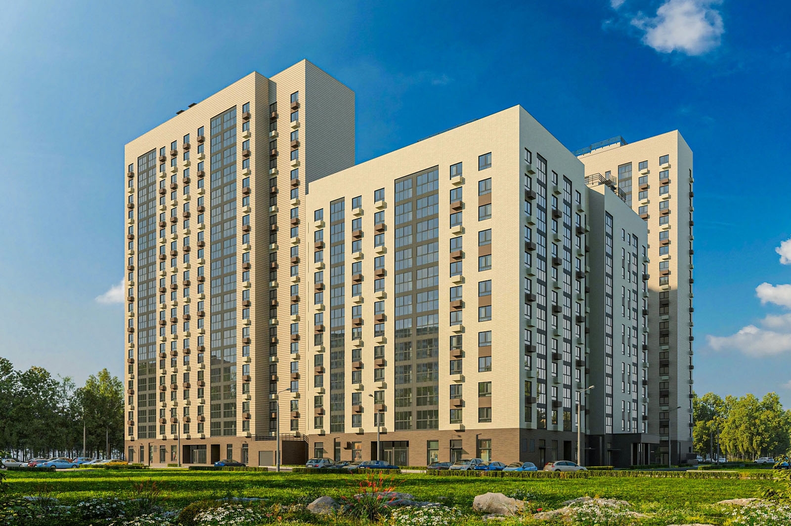 В жилую часть корпусов войдет 466 квартир, в том числе 166 однокомнатных, 200 двухкомнатных, 93 трехкомнатных и семь четырехкомнатных. Их общая площадь превышает 27,5 тыс. кв. метров.