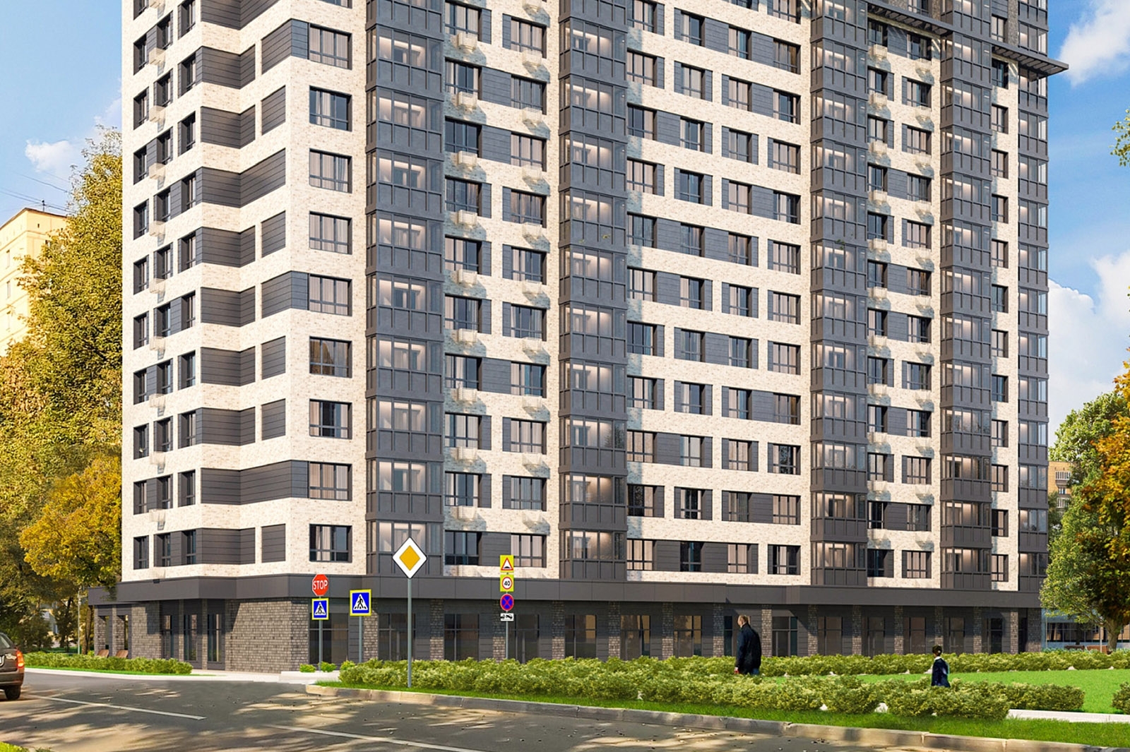Первый этаж нежилой – здесь появятся магазины, кафе, салоны красоты, спортклубы, кружки и секции для детей. В вестибюле жилой части есть колясочная, комната консьержа с санузлом, кладовая для уборочного инвентаря и зона почтовых ящиков. В каждой секции установлены грузопассажирские лифты на 1 тыс. и 400 кг, оборудованные визуальными и тактильными средствами информации. Новостройку также оснастили системами охраны входа в здание, оповещения и управления эвакуацией при пожаре, пожарной сигнализацией, системой видеонаблюдения.