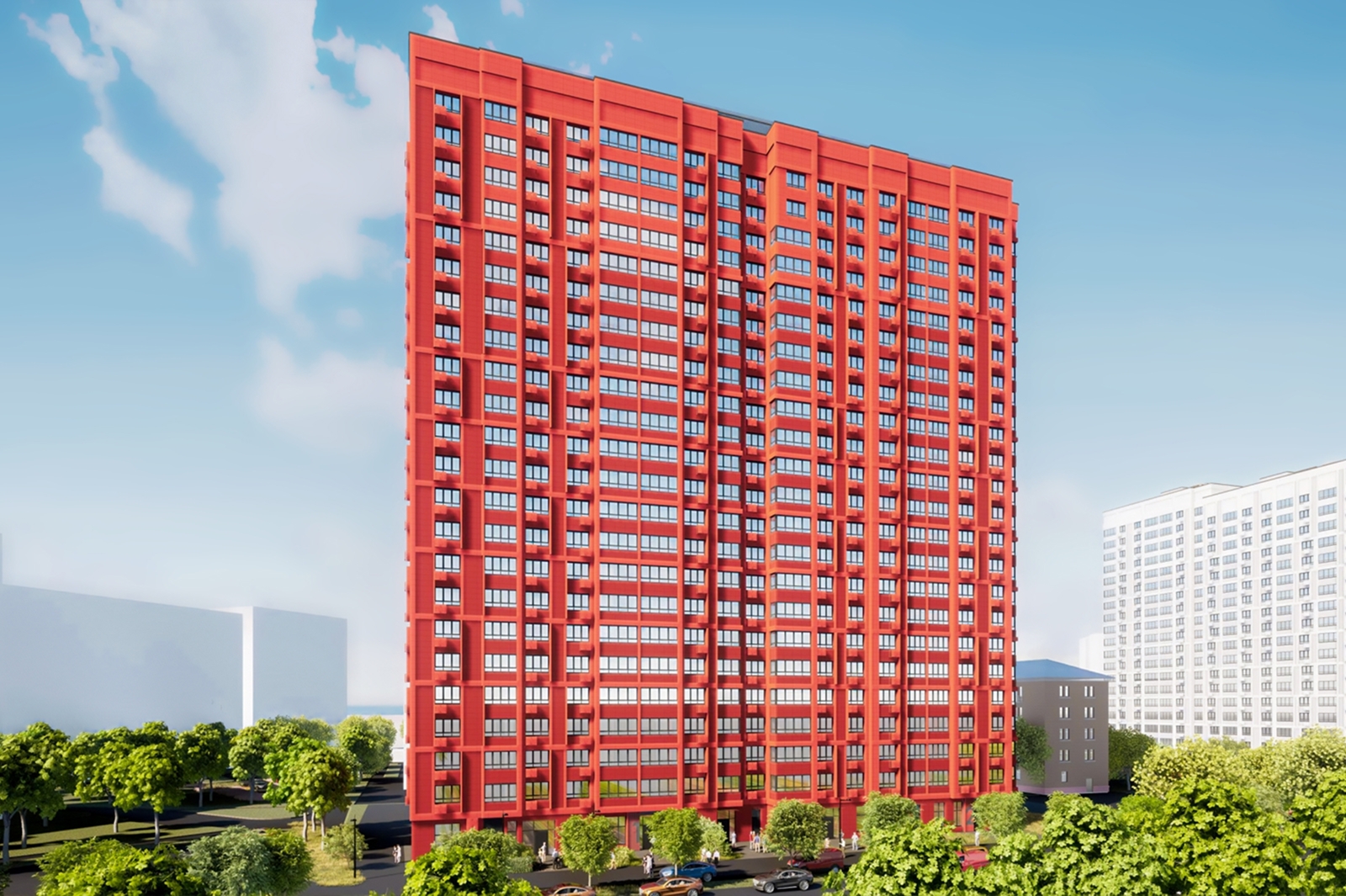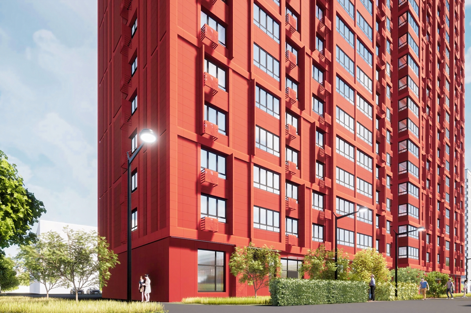 Первые этажи новостройки оформят витражным остеклением. В подъездах и помещениях предусмотрены высокие потолки и удобная планировка.