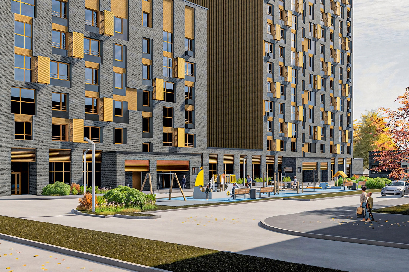 После окончания строительства территорию около дома благоустроят. Во дворах появятся детская и спортивная площадки, оборудуют зоны отдыха. Дополнительно будут высажены несколько десятков деревьев и кустарников, засеяны газоны.