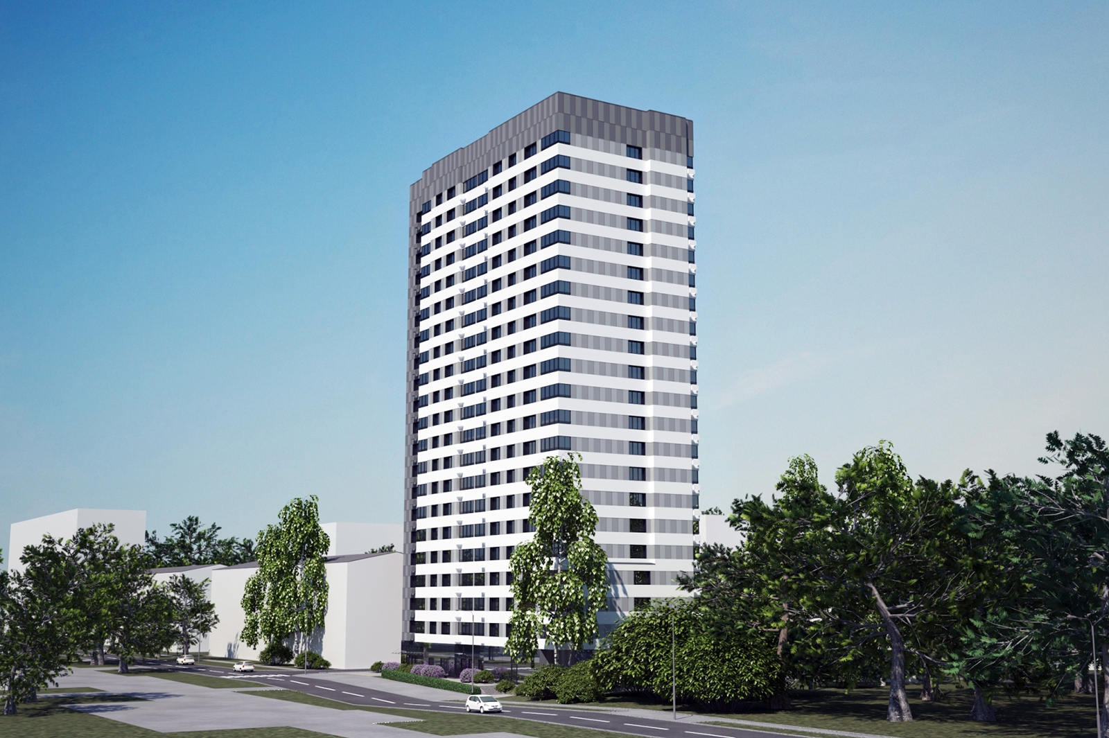 Жилой дом представляет собой односекционное здание, возводимое по индивидуальному проекту. Фасады облицуют металлическими кассетами белого и серого цветов, установят корзины под кондиционеры. Новостройку оборудуют автоматизированной системой контроля и учета потребления энергоресурсов.