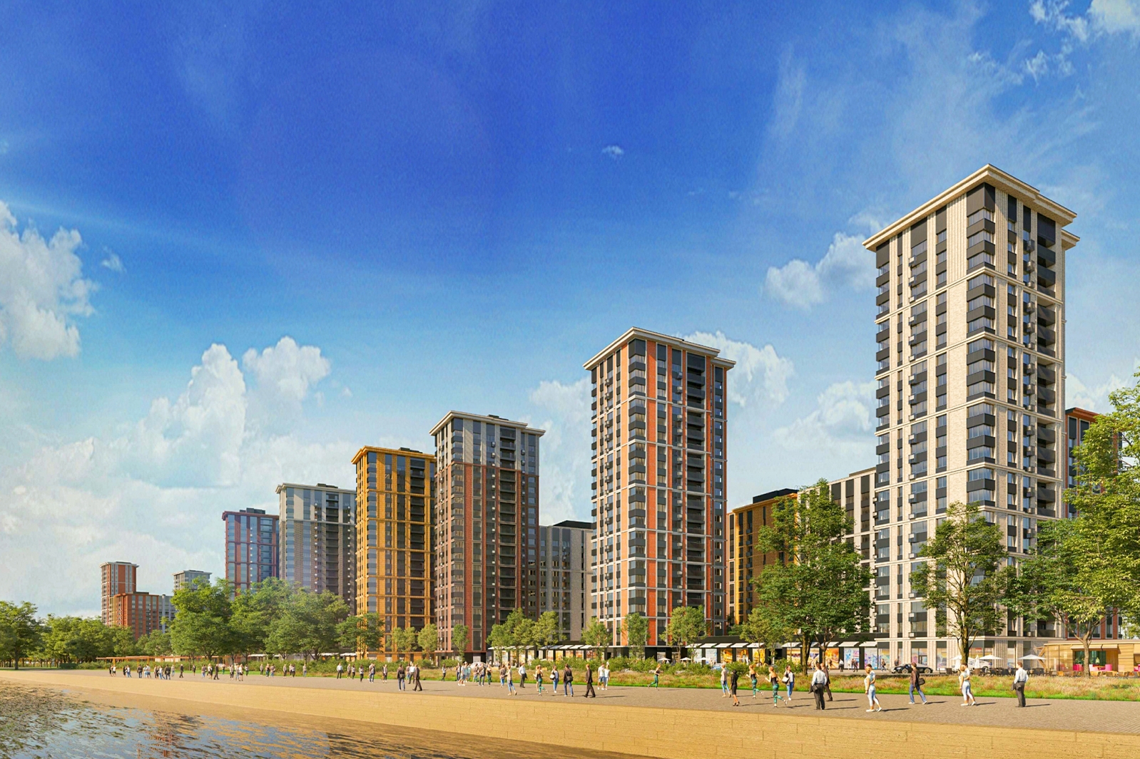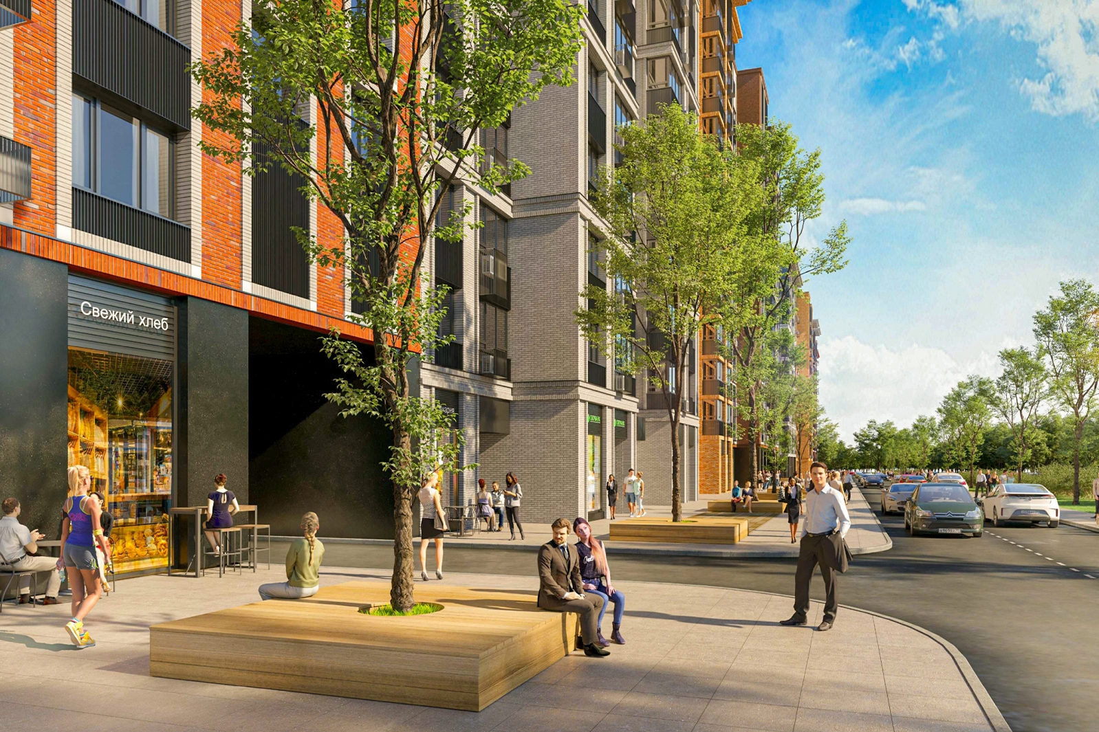 В прогулочных зонах устанавливают фонари, лавочки и урны, разбивают клумбы, высаживают деревья и кустарники. В новых кварталах найдется место и для тихого отдыха, и для активных занятий спортом.
