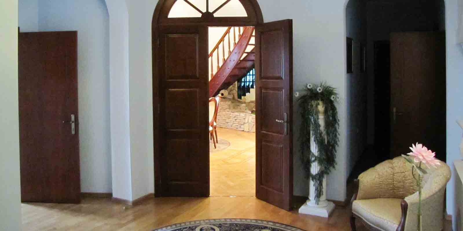 Кухня и кладовые при ней имели выход на черную лестницу, но были изолированы от жилых комнат длинным коридором. Во всех нежилых помещениях полы были сделаны из тесаных досок и керамической плитки.