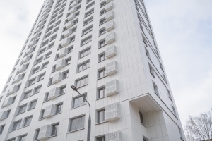 Все здания объединяет схожий дизайн – деление площади новостроек на небольшие сегменты-ячейки, а каждый блок многосекционных строений выполнен в своем оттенке.
