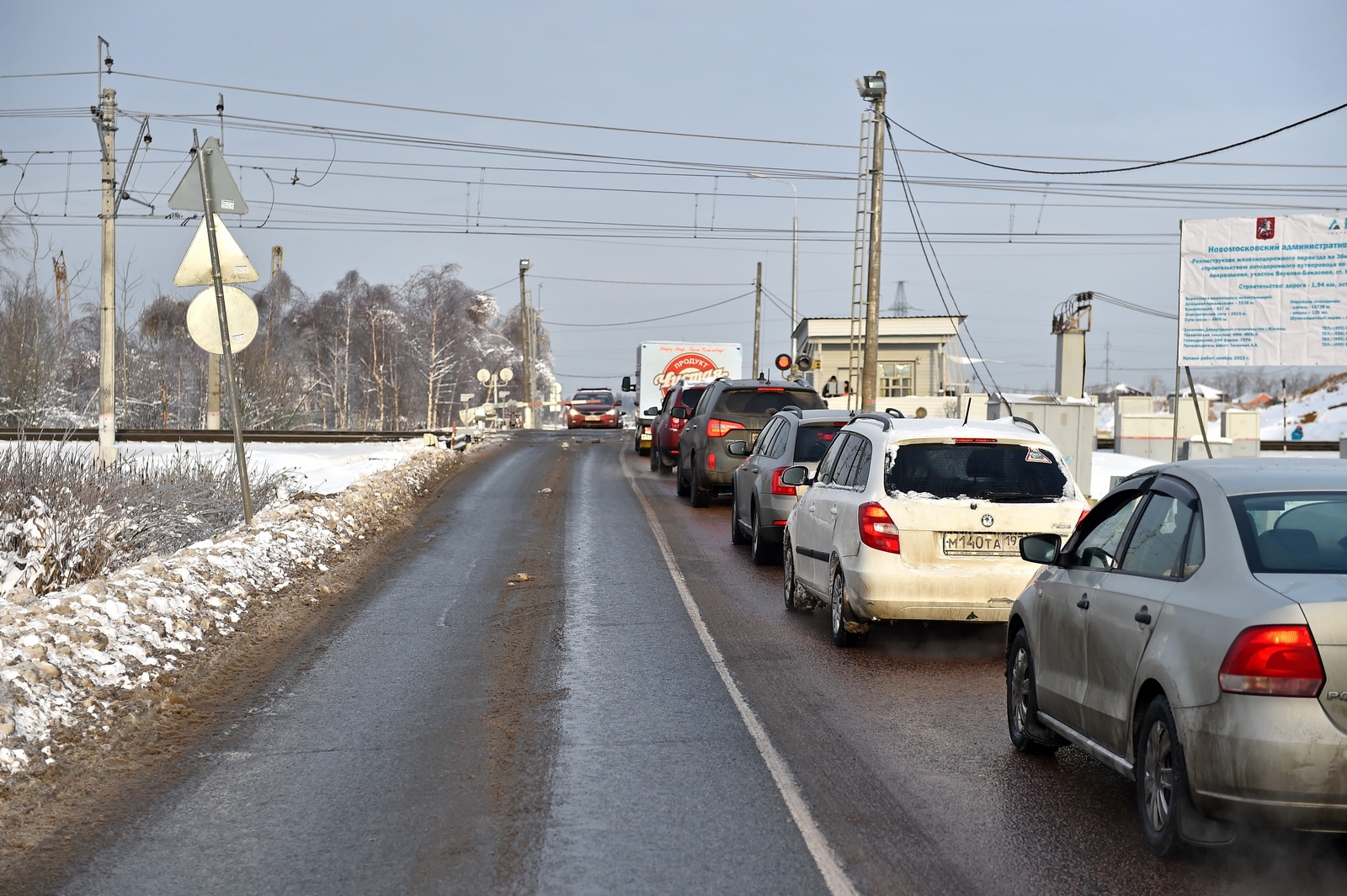 На железнодорожном переезде в Крекшино Новой Москвы в часы пик скапливаются километровые пробки. После ввода автодорожного путепровода движение на этом участке разгрузится в шесть раз.