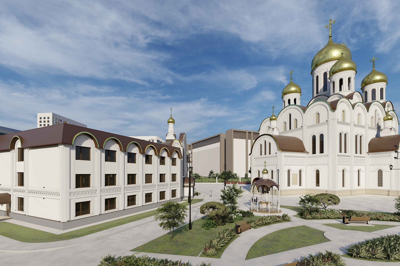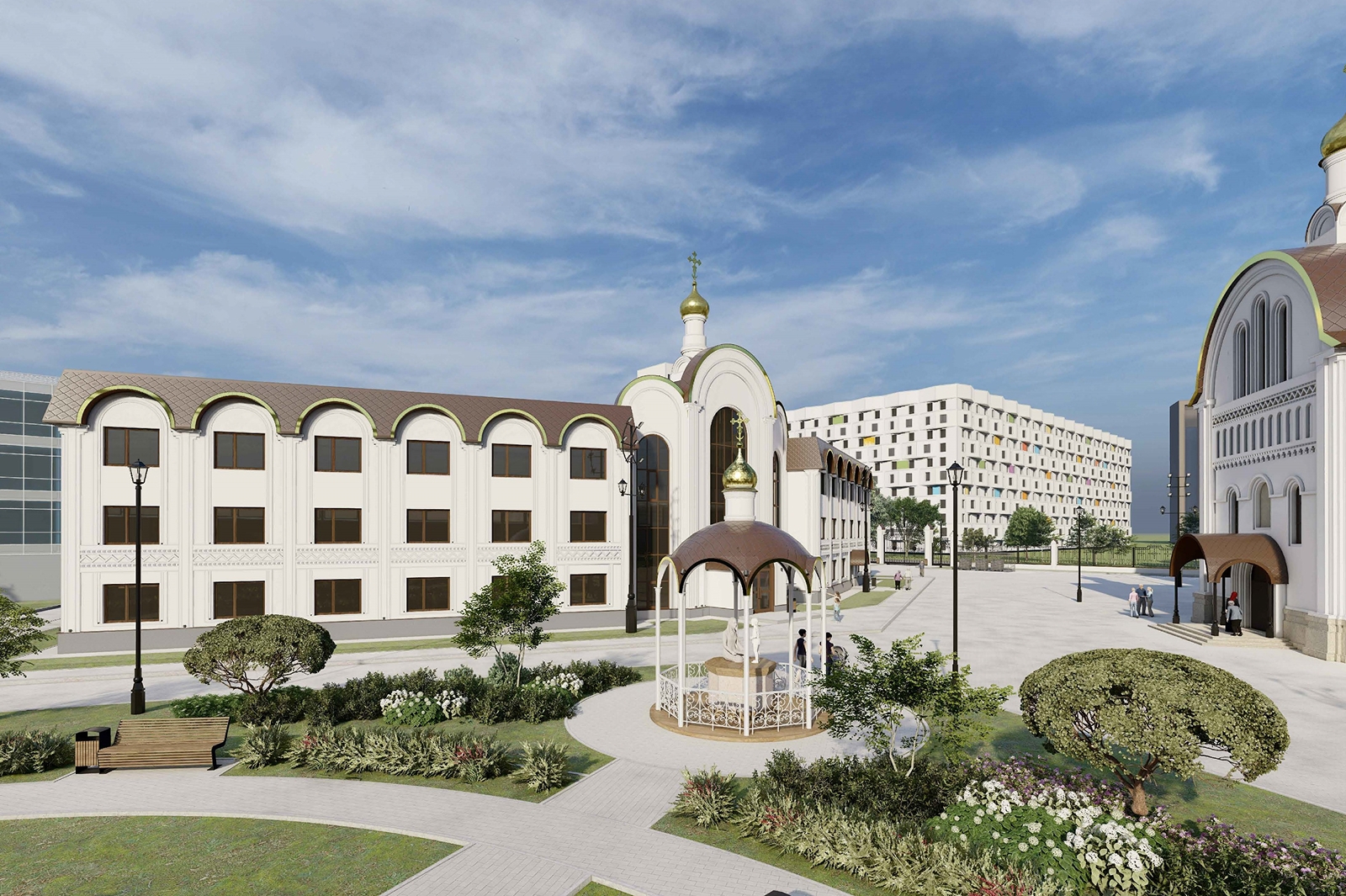 Цветовое решение фасадов выполнят в рамках общей концепции архитектурного ансамбля храмового комплекса: