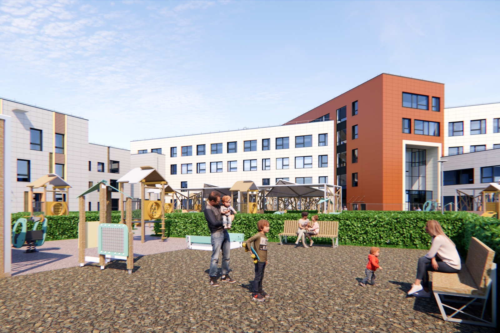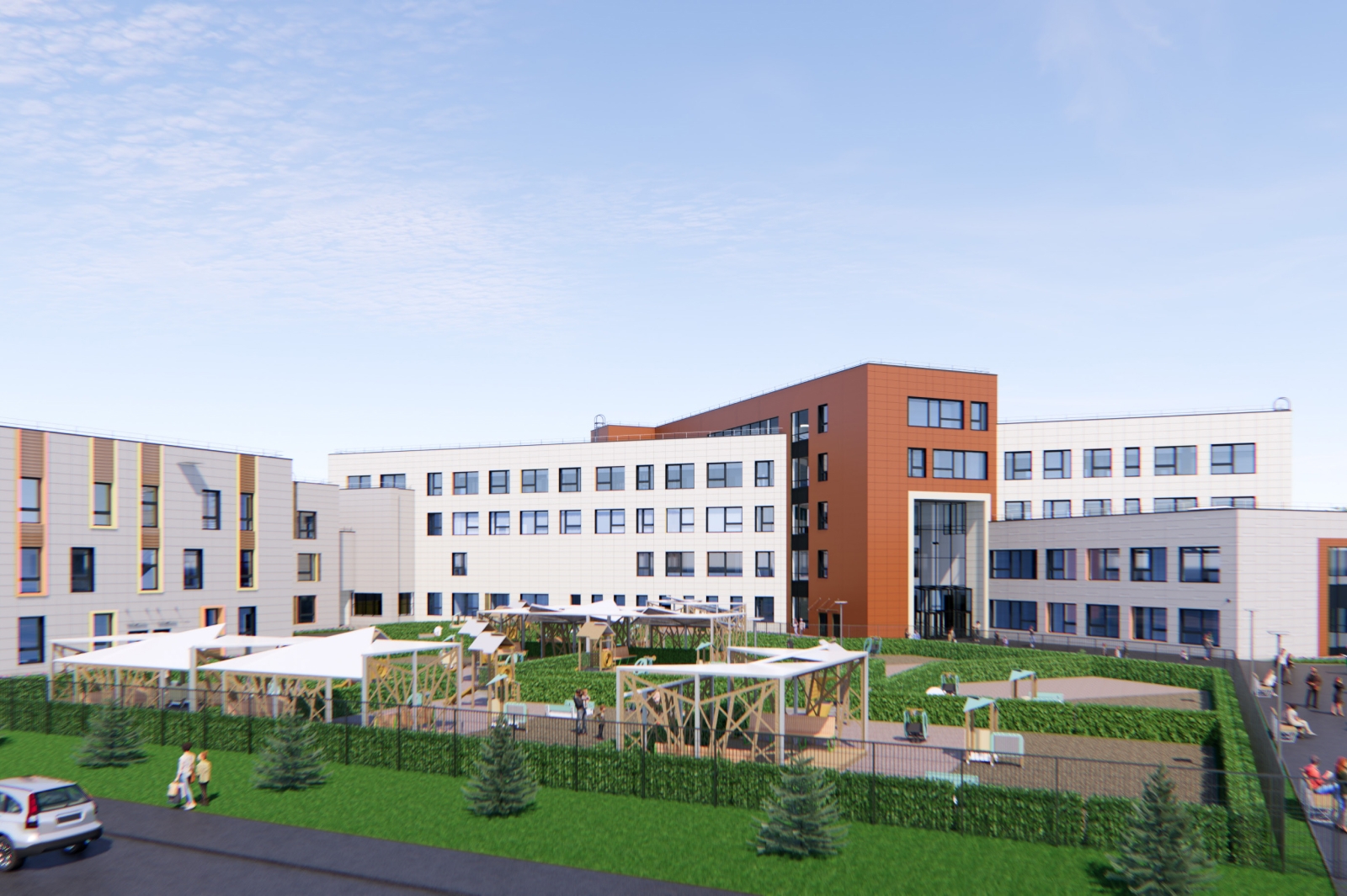 На прилегающей территории обустроят две большие спортивные площадки и 10 детских – для разных возрастов.