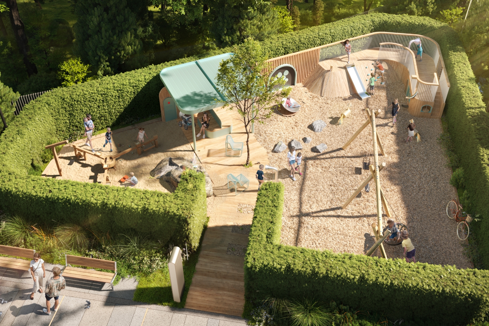 «Двор-парк выполнят в эстетике нерукотворного леса. Для этого на территории площадью 2 га высадят более 540 крупных деревьев, 70% из которых относятся к хвойным. Эффект природного пространства поддержат композиции из ледниковых валунов и песчаников. В лесу создадут «зеленые комнаты» со стенами из живых изгородей, каждую из которых наполнят индивидуальным содержанием», – сказал Сергей Кузнецов.