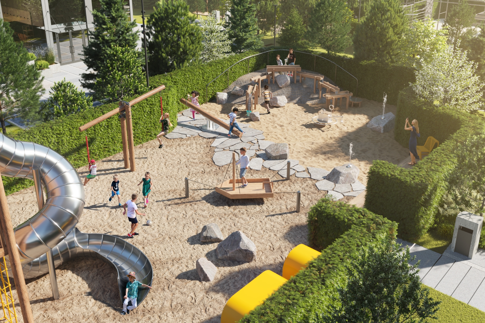 Камни на природных детских площадках станут элементами развивающей среды: цепочки валунов позволят развивать крупную моторику, навыки балансирования и ловкости. Валуны можно будет использовать в том числе для экспериментов с природными материалами: ребята смогут задействовать их в опытах наравне с водой и песком.