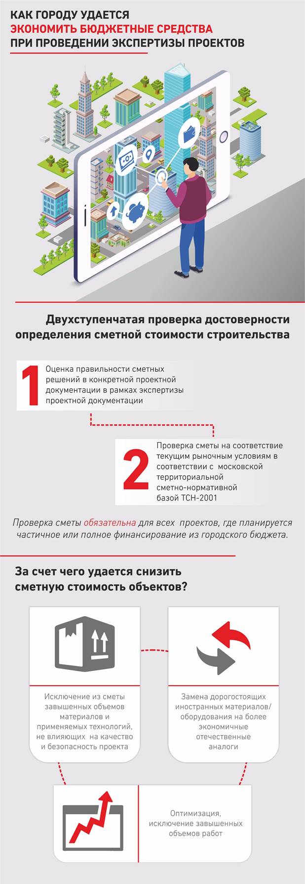 «Сначала в ходе экспертизы проектной документации оценивается правильность сметных решений и соответствие позиций рыночным ценам в территориальной сметно-нормативной базе Москвы ТСН-2001. Также каждый бюджетный проект проходит дополнительную проверку сметной документации – на этапе прохождения процедуры проверки достоверности определения сметной стоимости», – пояснил В. Леонов.