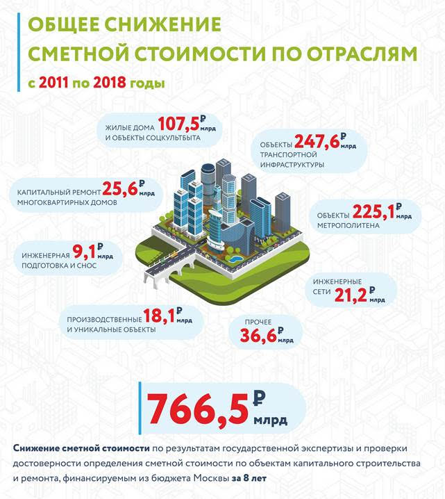 «Объекты соцкультбыта, жилые дома, производственные и уникальные объекты, а также инженерные сети и капитальный ремонт многоквартирных домов в сумме позволили оптимизировать с 2011 года финансовые вложения почти на 172,5 млрд рублей», – отметила руководитель Мосгосэкспертизы.