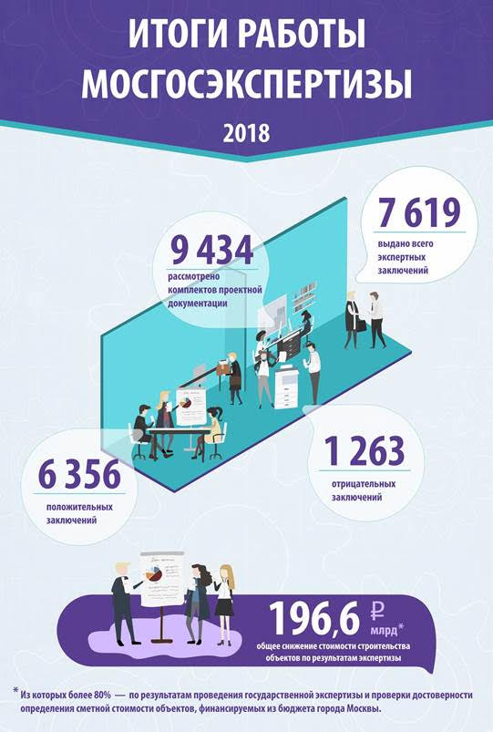 «Показатели работы в 2018 году свидетельствуют об устойчивых темпах и объемах строительства. В Москве ежегодно вводятся миллионы квадратных метров жилья, сотни километров дорог, десятки важных социальных объектов, а также новые станции метро. Все проекты, реализуемые за счет бюджета, проходят согласование в Мосгосэкспертизе», – отметил В. Леонов.
