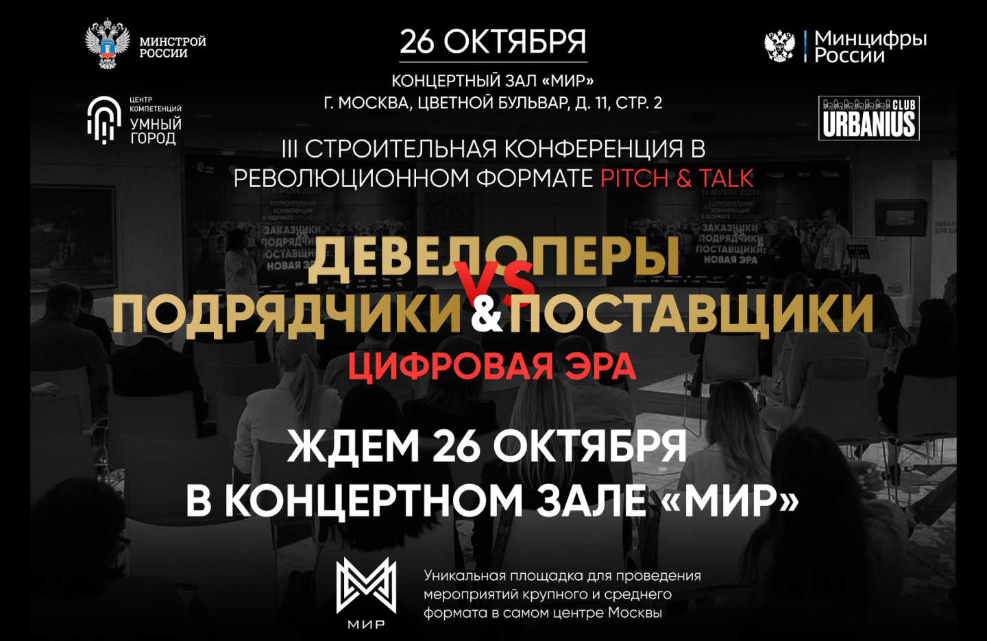 Строительная конференция в формате Pitch&Talk «Девелоперы vs Подрядчики & Поставщики: Цифровая эра» пройдет 26 октября.