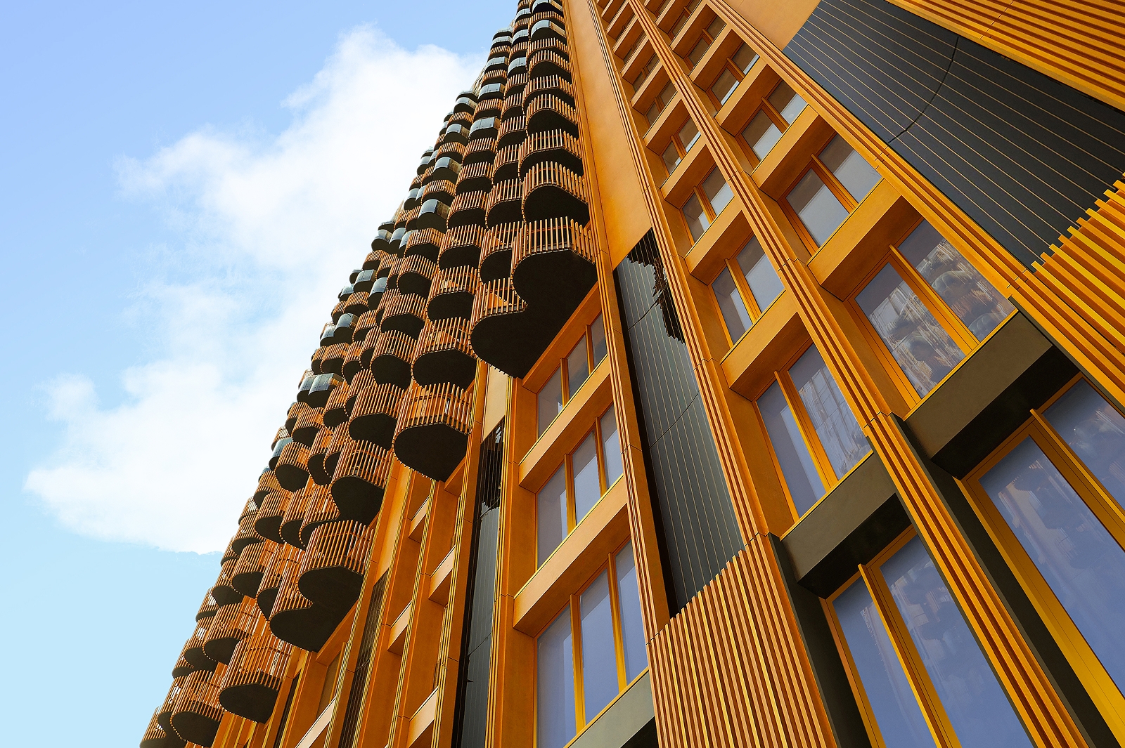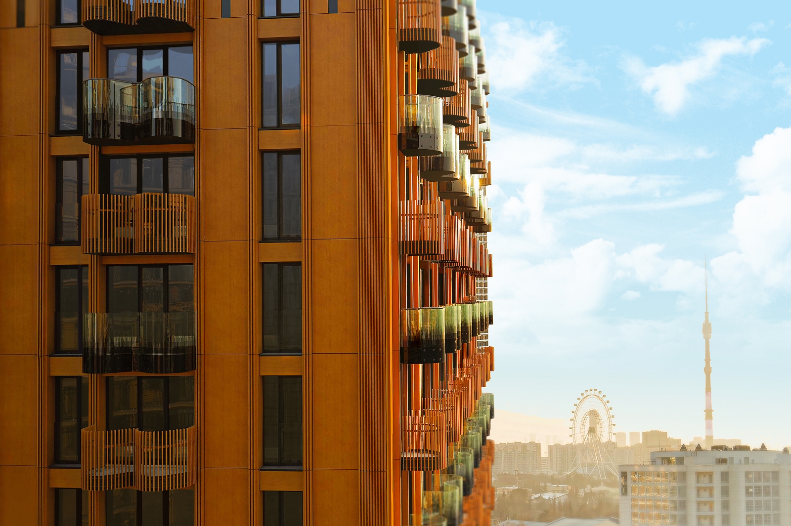 «Мы стремимся сформировать устойчивую ассоциативную связь кластера «СОЮЗ» с его природным окружением. Древесина для этого подходит лучше всего, однако использовать фасадные панели из нее мы не могли. В условиях мегаполиса они быстро разрушаются, теряют эстетичный вид и не соответствуют современным требованиям пожарной безопасности для высотных зданий. Поэтому мы разработали алюмокомпозитный фасад, который максимально точно и качественно имитирует текстуру натурального дерева. Это необычное решение наполняет облик проекта теплом и дарит ощущение загородного оазиса», – пояснил автор концепции архитектурного облика объекта Станислав Кулиш.