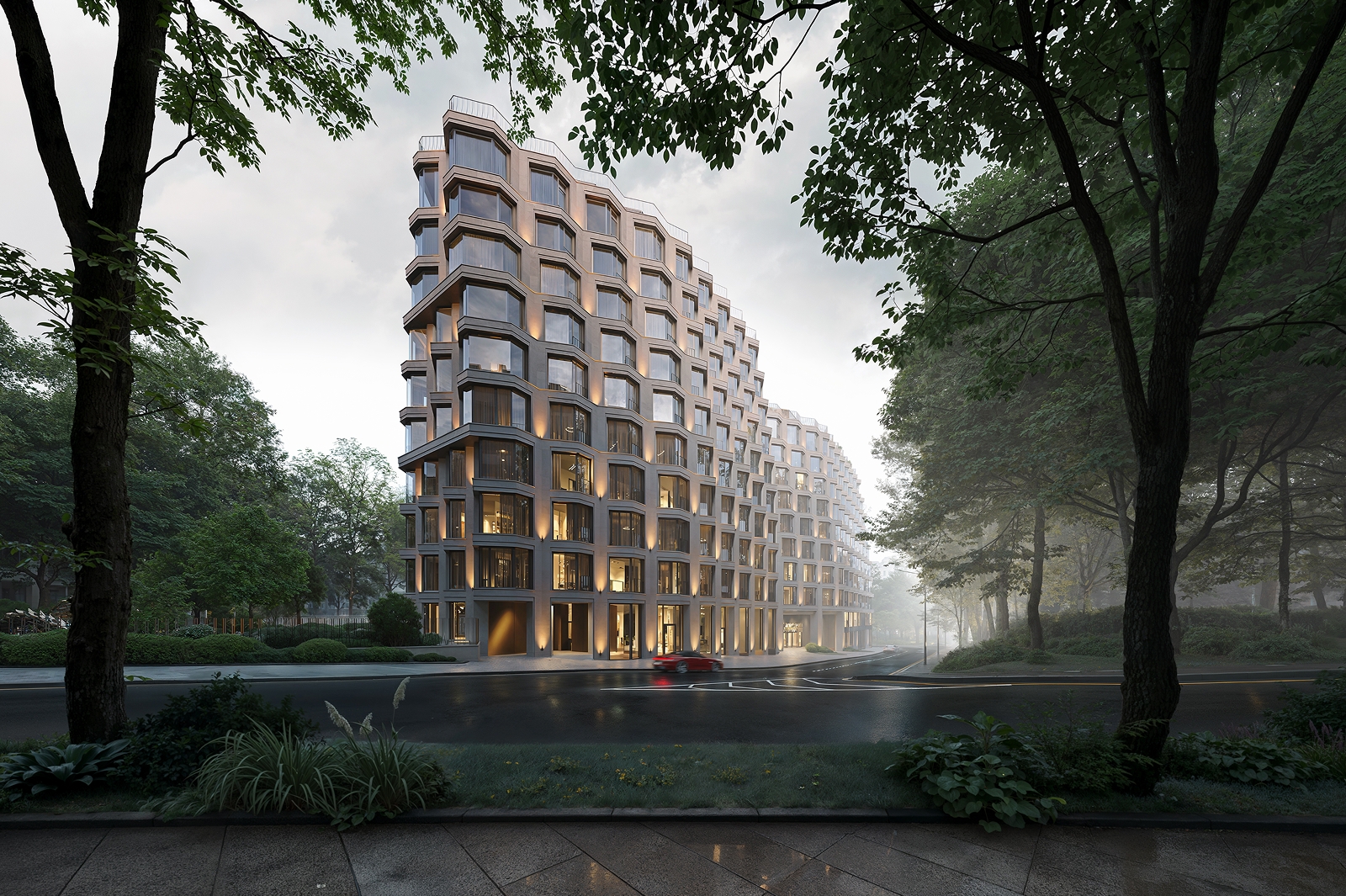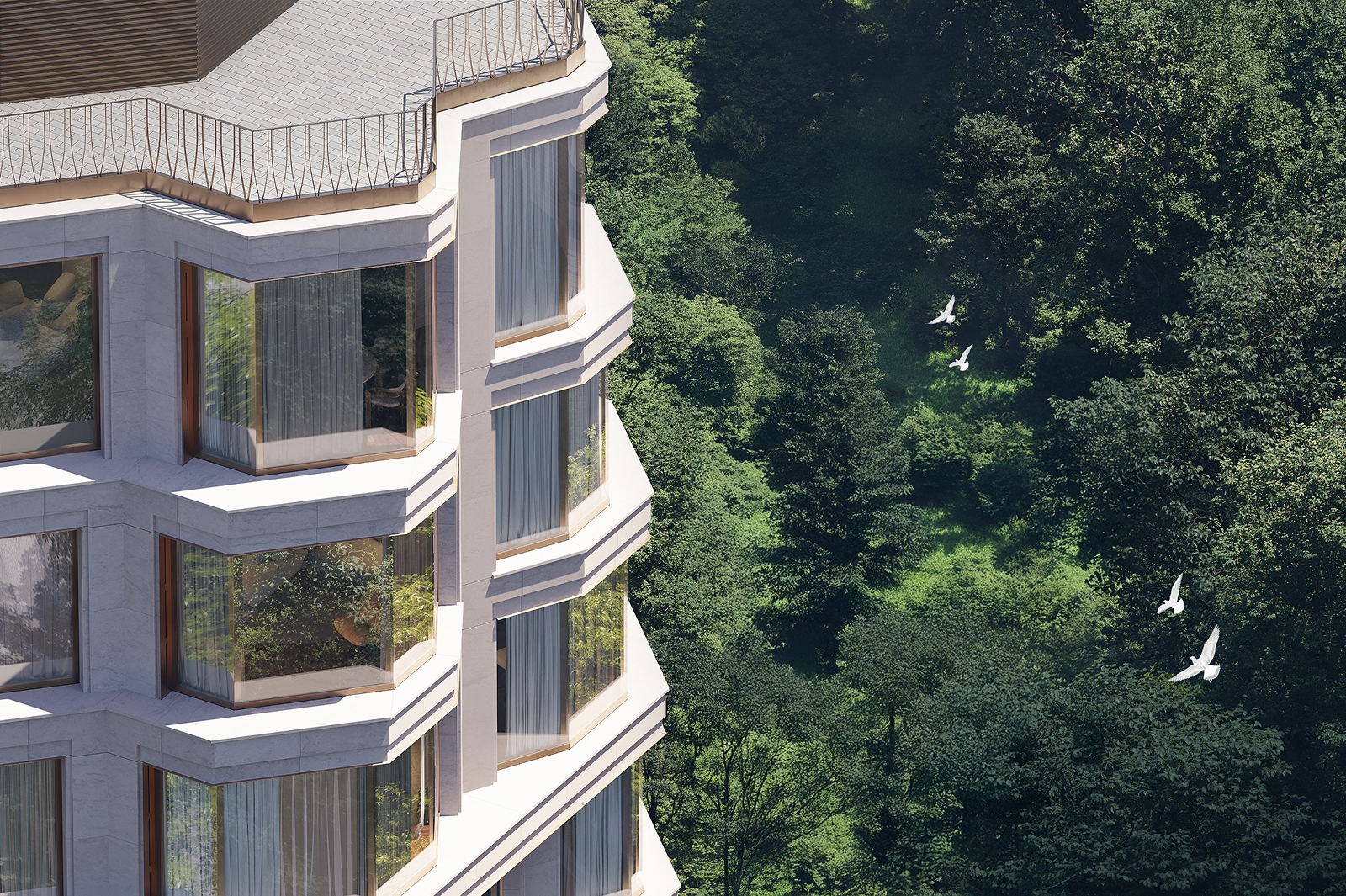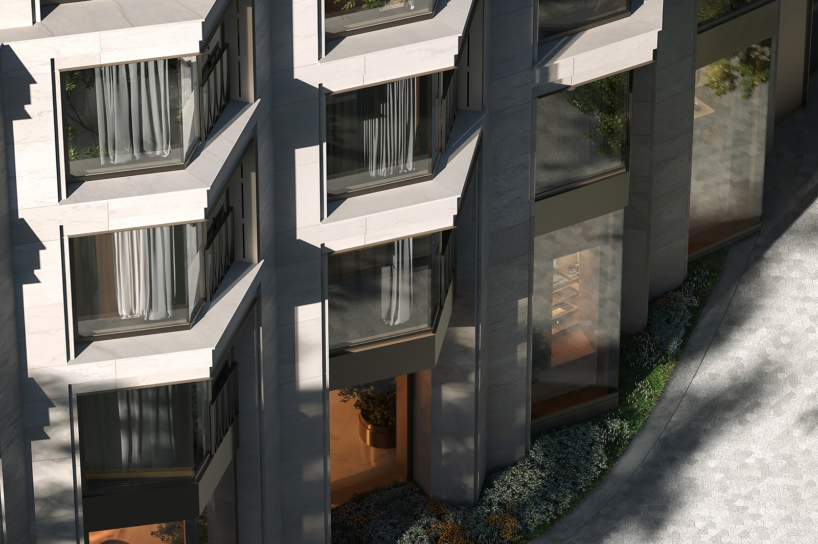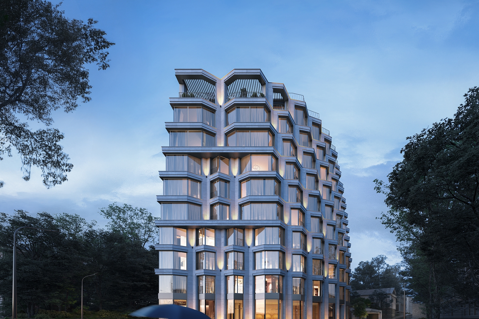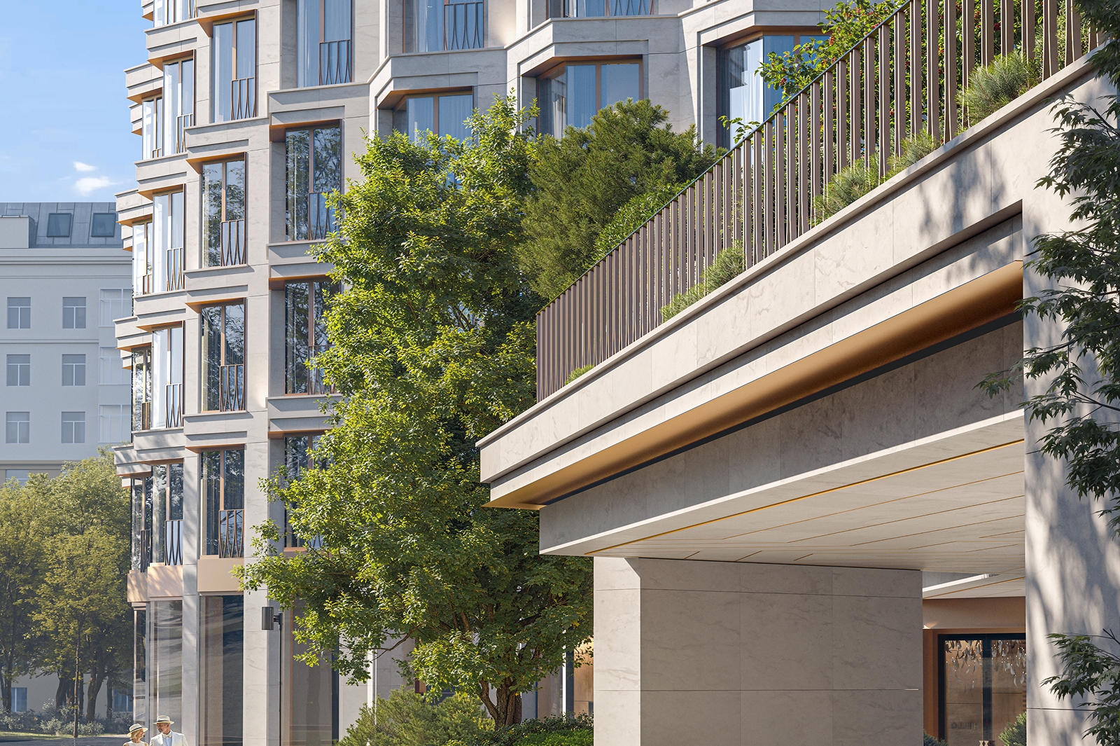 «Современный облик комплекса подчеркивается панорамным витражным остеклением из архитектурного многофункционального стекла, эркерами с французскими балконами с декоративной отделкой под бронзу. Выразительности фасадной композиции добавляет натуральный камень – гранит и белый известняк – с металлическими фрагментами. Жителям района этот проект привнесет дополнительные положительные эмоции благодаря тому, как здание интересным образом будет раскрываться в процессе движения вдоль улиц: с одной стороны кажется светлее, с другой – темнее из-за асимметрии откосов», – сказал Сергей Кузнецов.