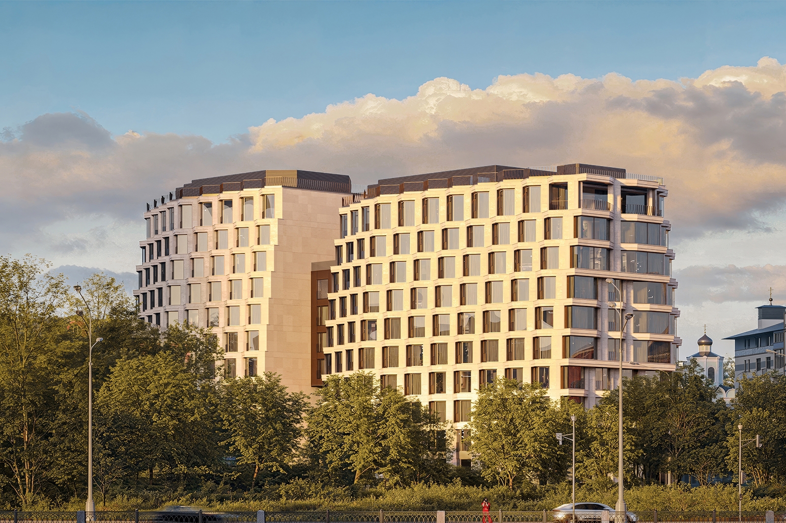 По его словам, он будет состоять из двух девятиэтажных секций общей площадью 23,5 тыс. кв. м, объединенных в единый ансамбль. Фасады облицуют натуральным камнем, который бережно впишется в сложившуюся застройку района Хамовники.