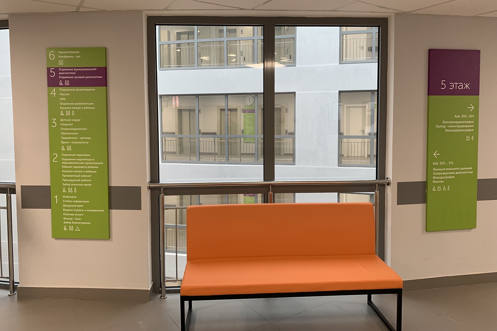 - отделения лучевой и функциональной диагностики, школьно-дошкольное и общие помещения (5 этаж);