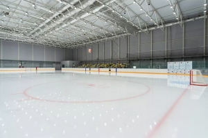 Фасад спорткомплекса облицуют металлическими панелями в составе сертифицированной системы с воздушным зазором. Помимо этого, предусматривается отделка помещений основного, вспомогательного, обслуживающего и технического назначений.
