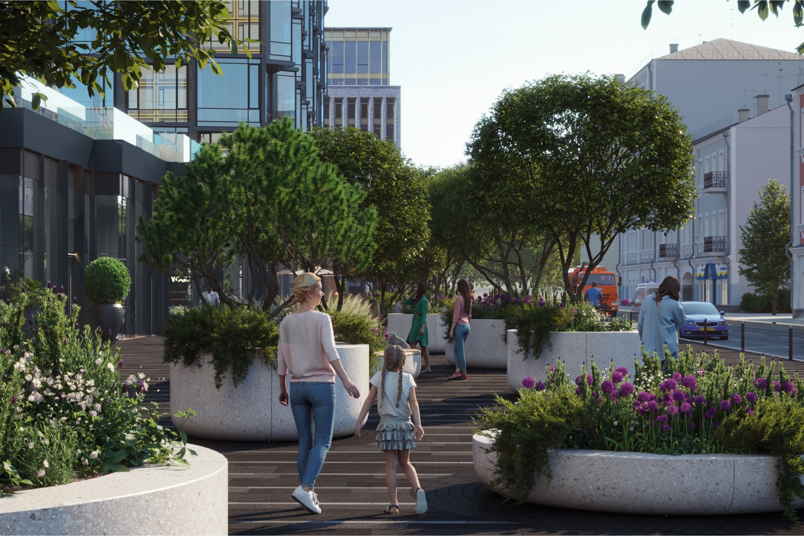 «Тротуарное мощение планируется выполнить из двух типов долговечных материалов светло-серых оттенков: гранитных плит и брусчатки. Архитектурная подсветка, которую создадут установленные фонари, подчеркнет красоту пешеходного пространства в вечернее время», – пояснил Кузнецов.