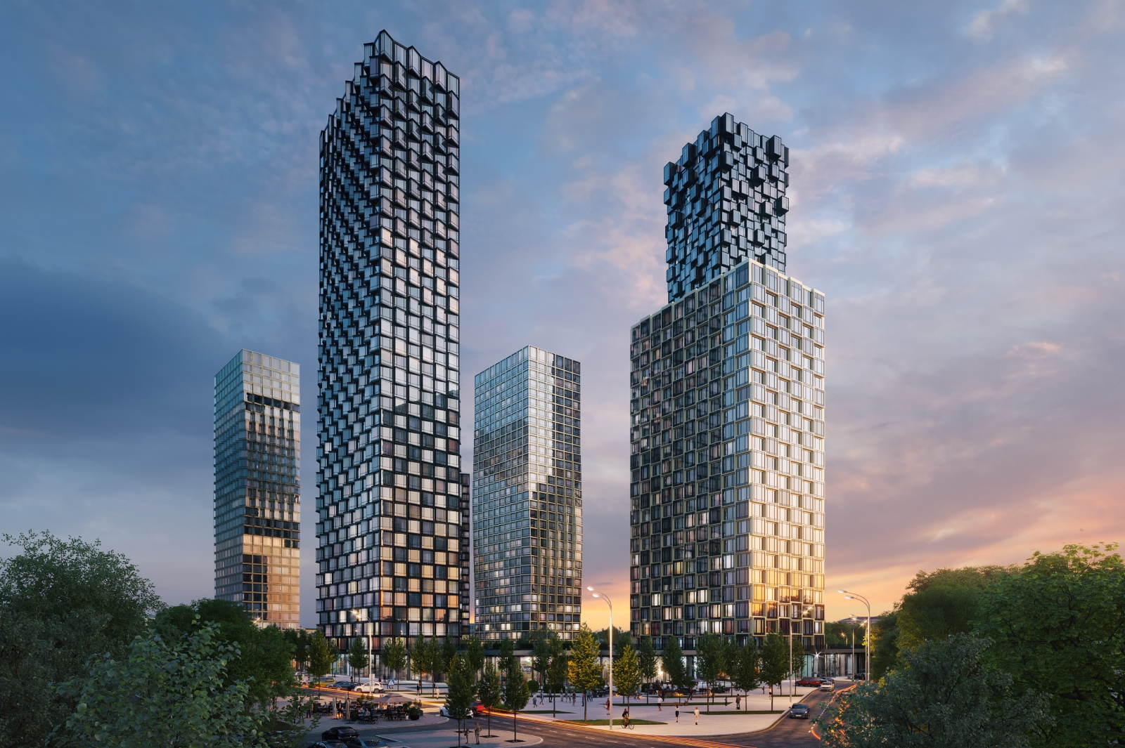 Сейчас возводится первая очередь жилого квартала: построено три корпуса, на которых устанавливаются модульные фасады. В зданиях ведется обустройство внутренних инженерных сетей и кладка межквартирных стен.