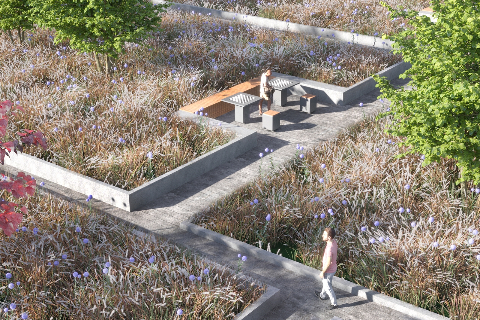 Он добавил, что важнейшим центром притяжения в новом городском саду станет амфитеатр со сценой, над которым обустроят навес. В хорошую погоду здесь можно будет проводить концерты и развлекательные мероприятия для взрослых и детей. Эту просьбу высказали жители – сейчас в районе не хватает мест, где можно было бы собираться под открытым небом.