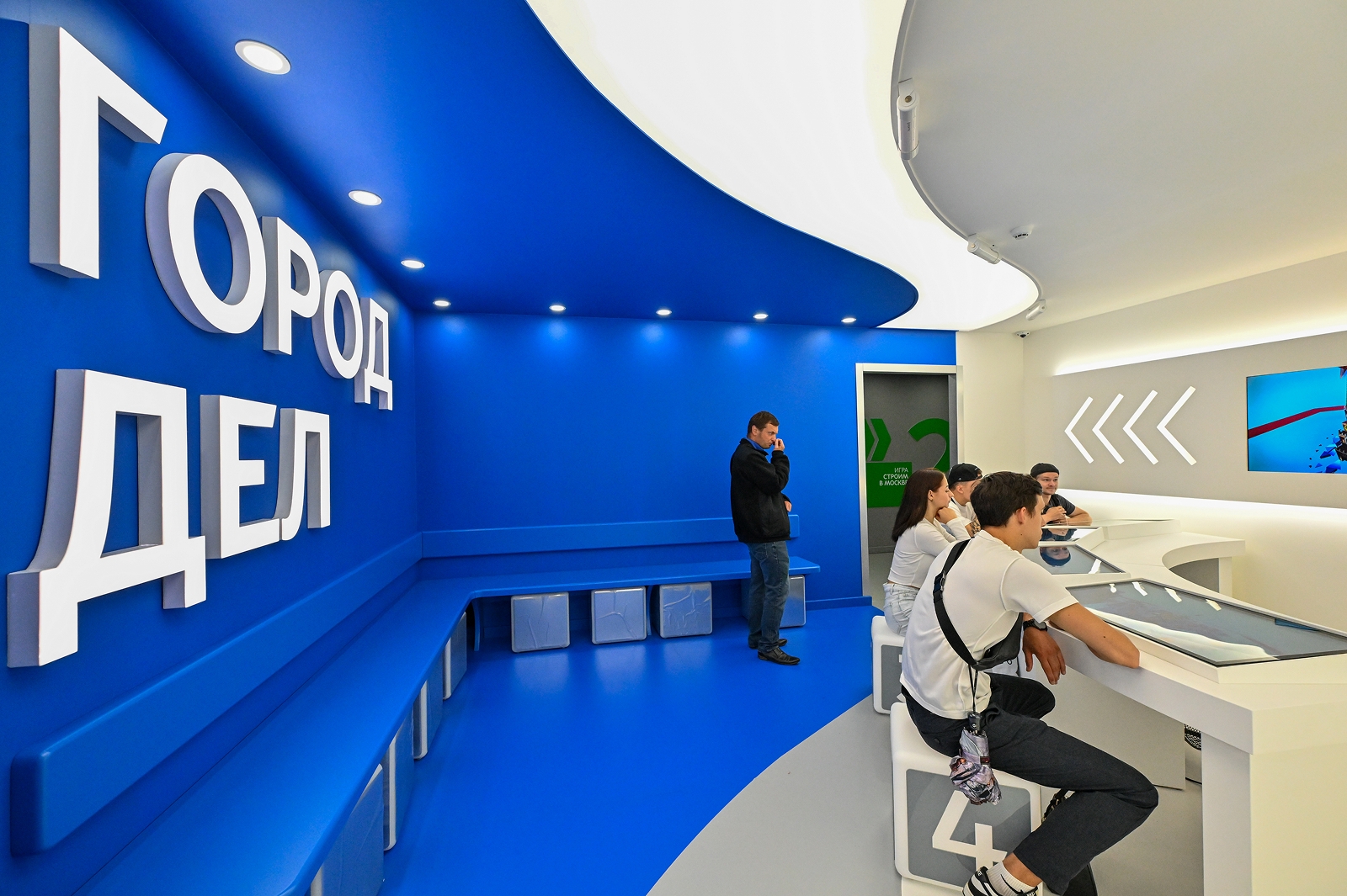 Для наглядности информация представлена в виде инсталляции с динамическими шкалами, где отображается прогресс Москвы, Парижа, Токио, Пекина, Берлина и Лондона.