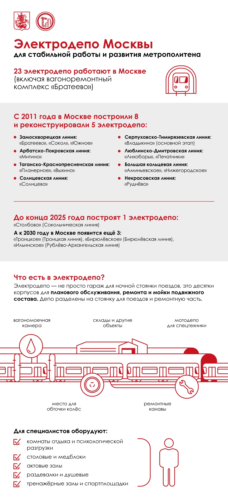 «Один из принципов разработанной типовой концепции – оптимизация площадей транспортного предприятия. Сейчас электродепо для обслуживания подвижного состава Московского метрополитена состоят из 30-45 объектов. Новая концепция, разработанная в столице, позволит сократить это число до 10. Так, отдельные здания и сооружения электродепо будут объединены в корпуса, состоящие из блоков. Это позволит снизить сроки строительства транспортного предприятия», – сказал Владимир Ефимов.