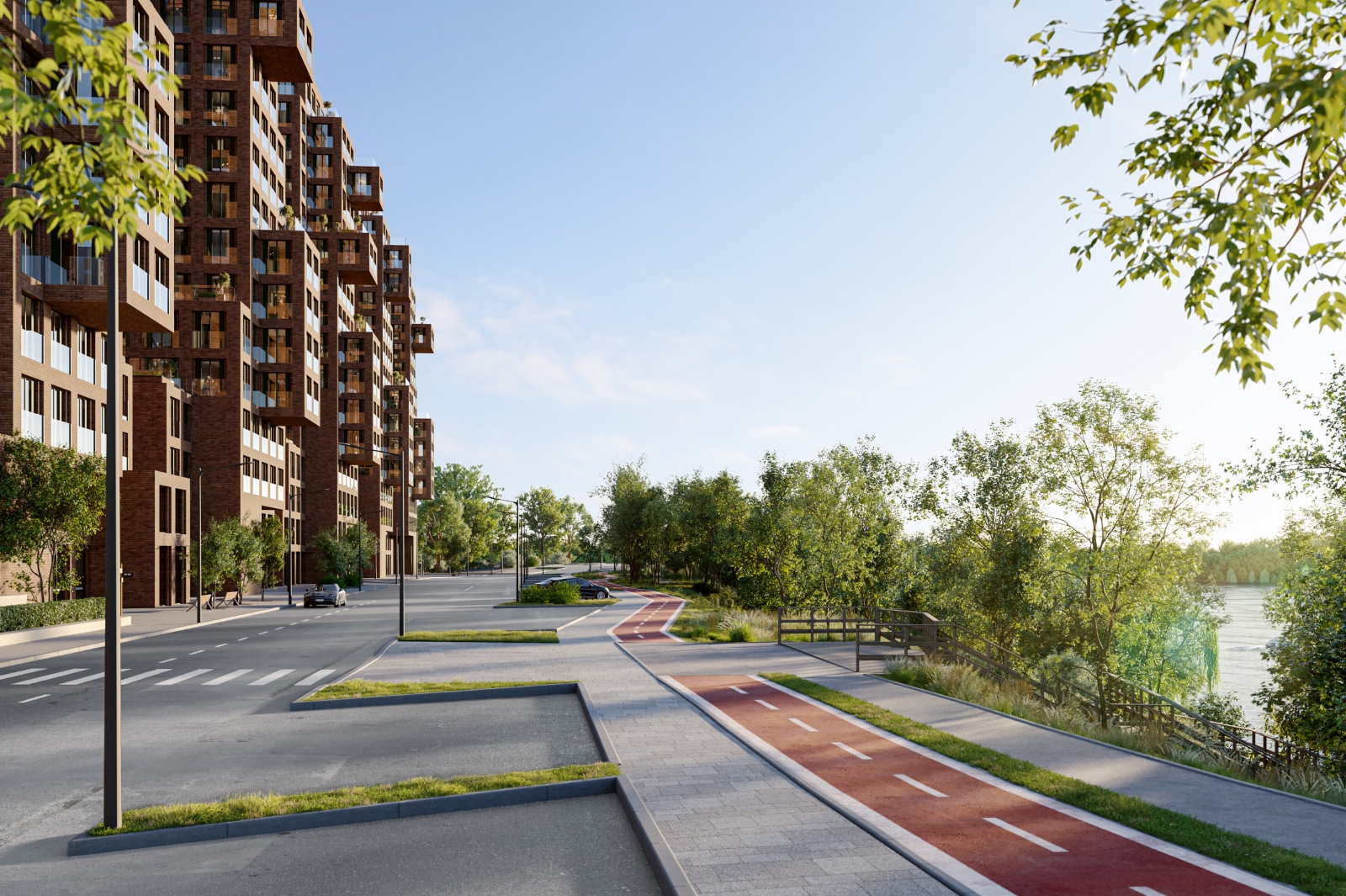 В ходе благоустройства территории специалисты устроят проезды, тротуары, уличное освещение, оборудуют детские игровые и спортивные площадки, места для отдыха, установят скамьи и урны. Кроме того, выполнят комплексное озеленение.