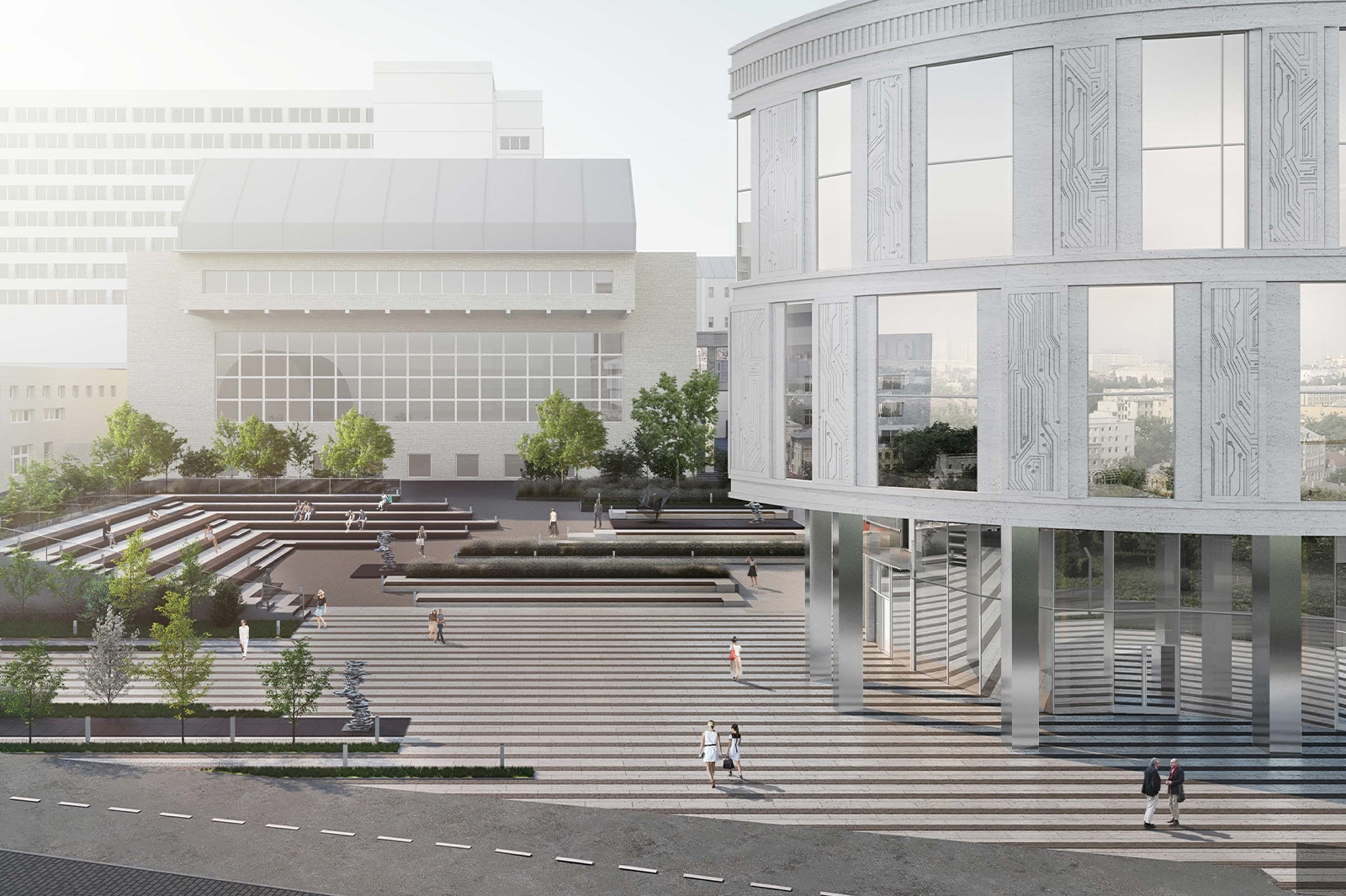 В разноуровневом здании, от 1 до 13 этажей, появятся кафе, конференц-зал и выставочные площади.