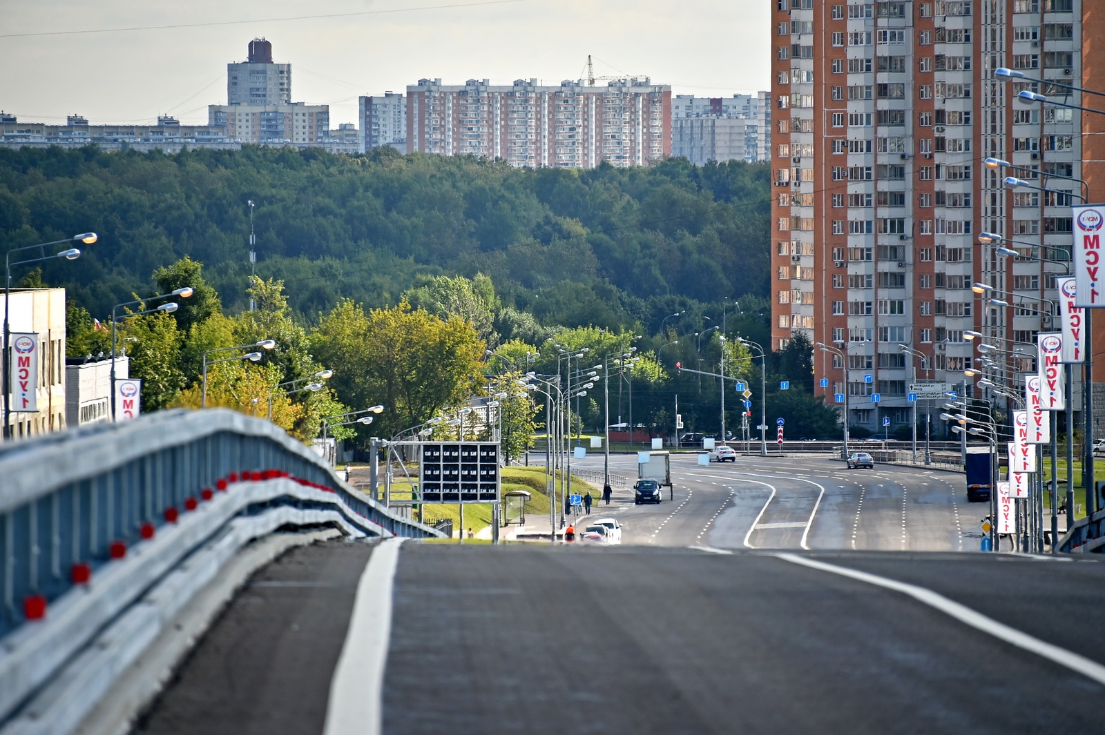 Пропускная способность трассы - 1500-2200 машин час. По ней будет организовано движение новых маршрутов наземного городского пассажирского транспорта для подвоза к станциям метро «Пражская» и «Царицыно».