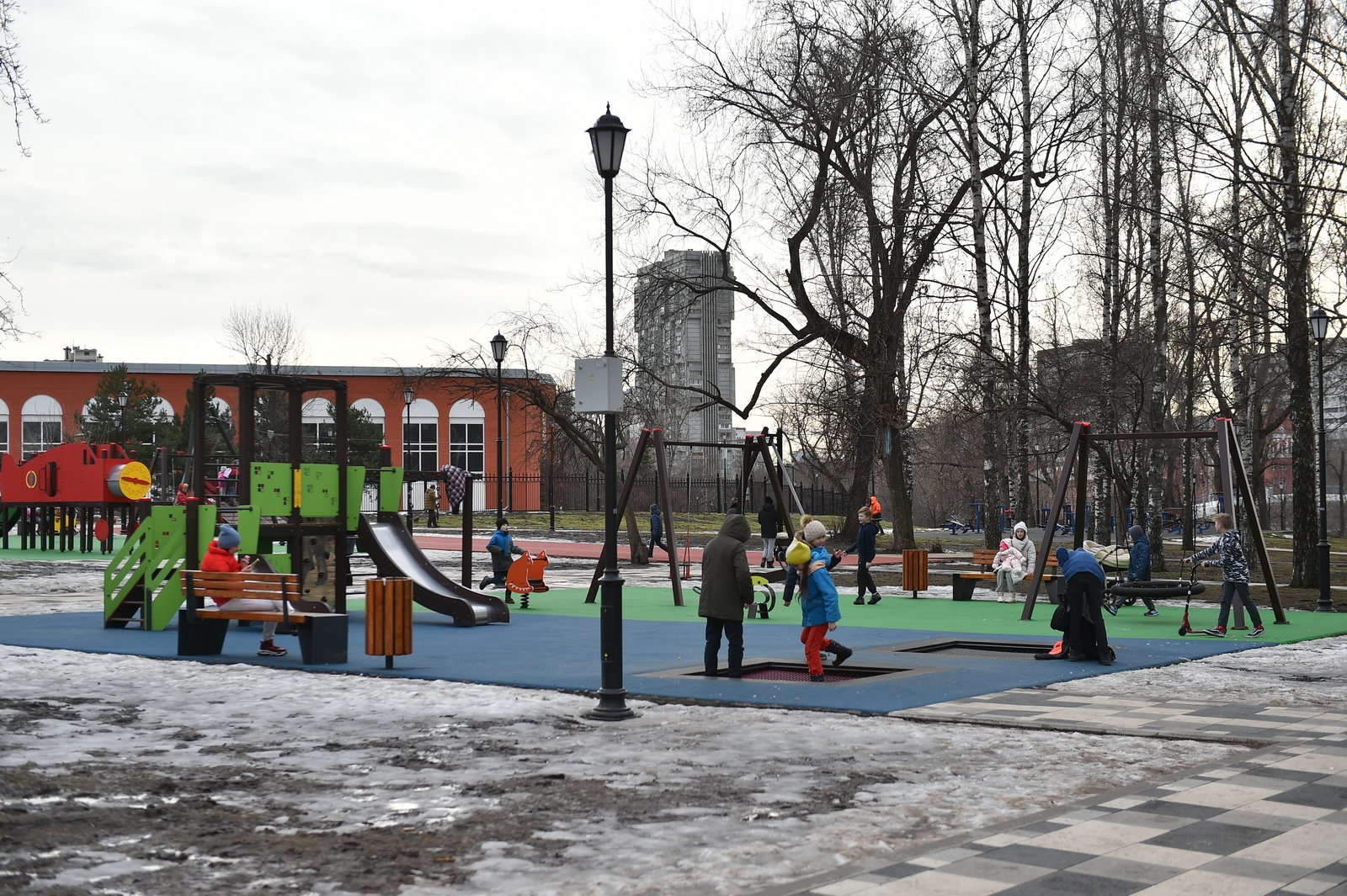 Эксперты разработали концепцию, которая привела к единому стилю все элементы парка – скамейки, урны, указатели, малые архитектурные формы, фонари. Выбрали общий рисунок, им выложили тротуары бетонной плиткой.