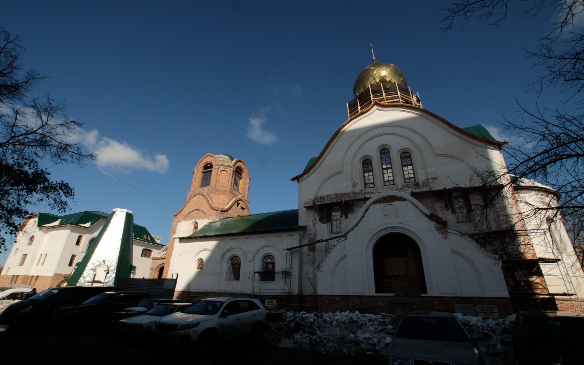 «Церковь уже приобрела задуманный архитекторами внешний вид. Завершена каменная кладка стен здания и колокольни, смонтирован барабан, установлен центральный купол с золоченым крестом. Уже почти готова крыша, к Пасхе на колокольню будет поднято шатровое завершение с куполом. Продолжаются фасадные работы, идет внутренняя отделка помещений», – сказал В. Ресин.