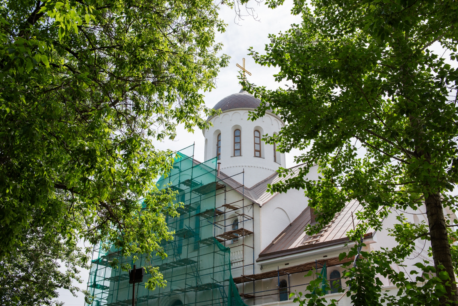 До конца лета строители завершат обустройство фасада и отделку помещений, монтаж внутренних инженерных систем и благоустройство прилегающей территории. Приход храма занимается разработкой проекта иконостаса, который установят до конца ноября.