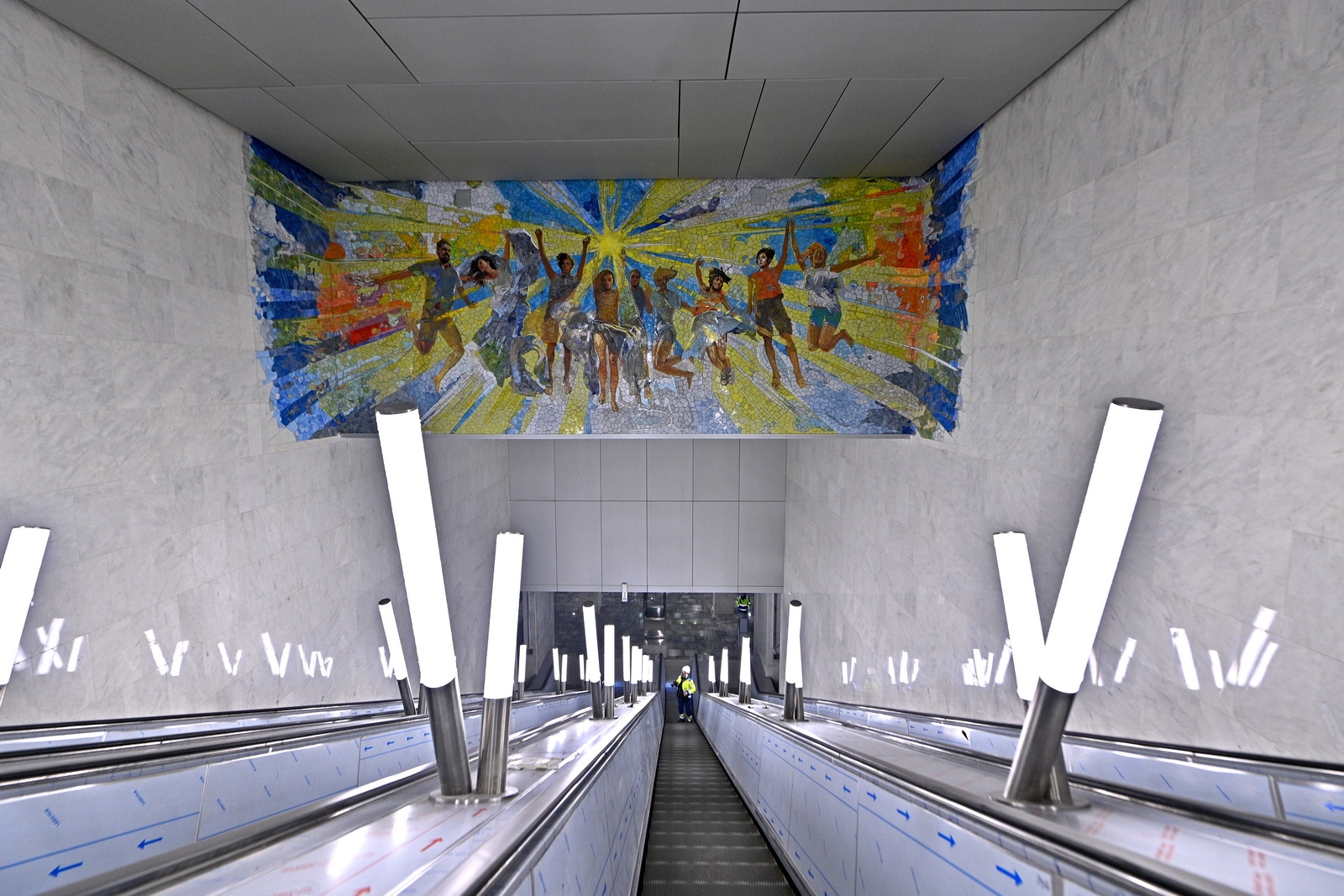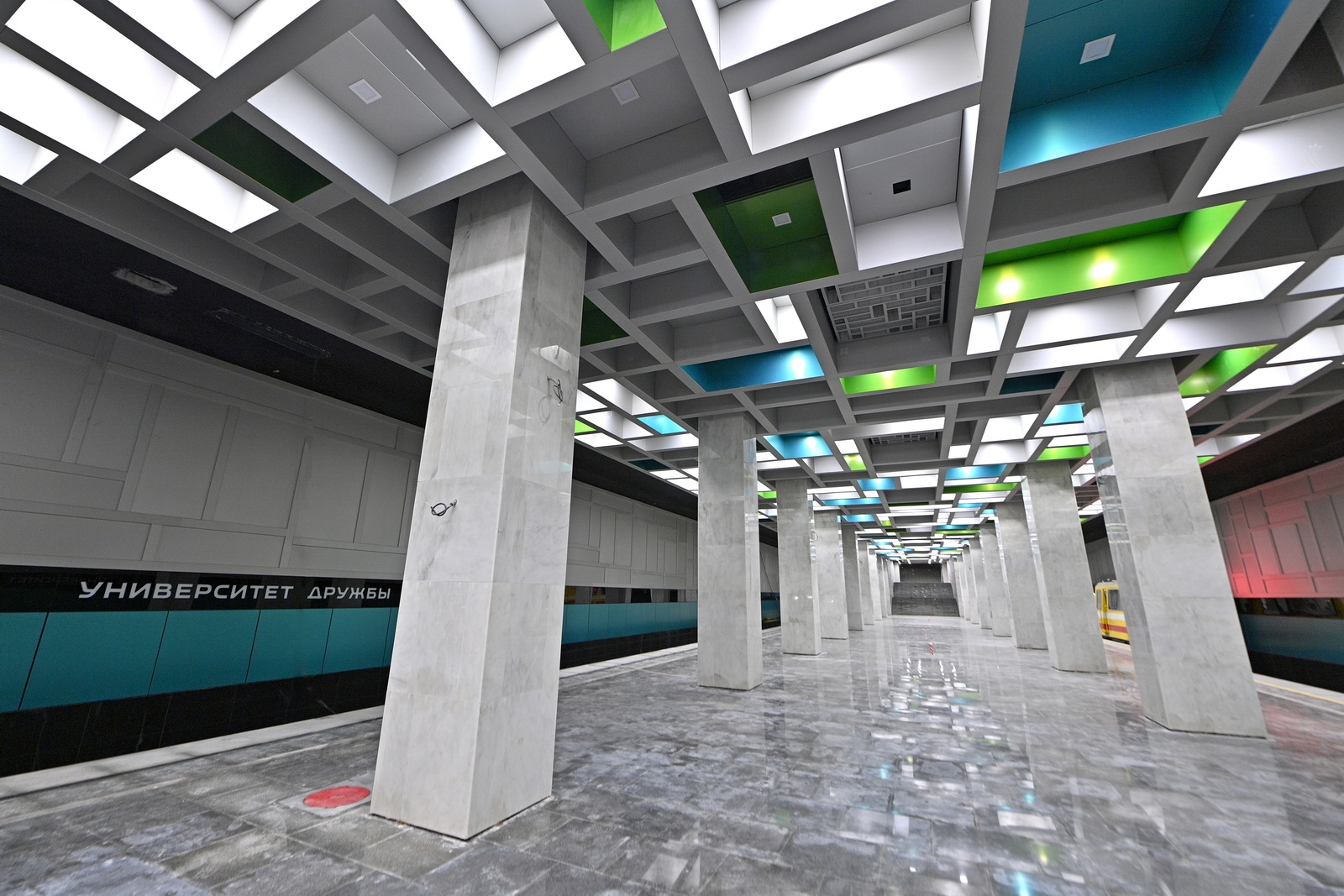 «В подземном вестибюле и примыкающем к нему пешеходном переходе уже смонтированы два мозаичных панно, посвященных международному сотрудничеству. Аналогичная тема продолжена и в проекте благоустройства прилегающей территории. Согласно нему, около станции появятся пять клумб в форме континентов Земли», – сказал Рафик Загрутдинов.