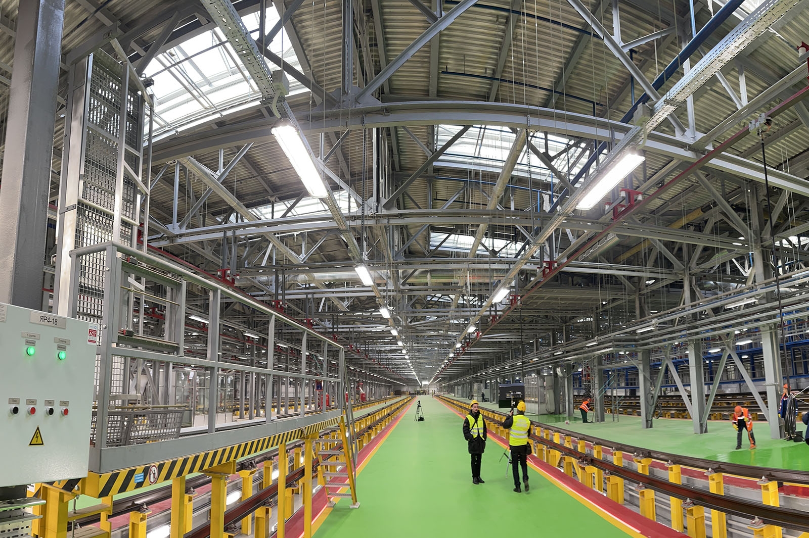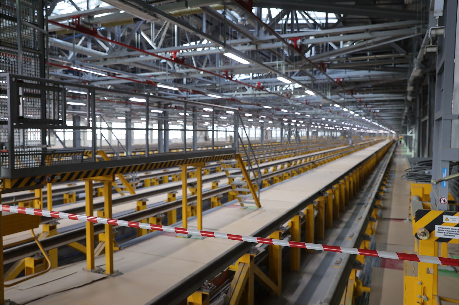 «Ведется устройство металлоконструкций и основания кровли отстойно-ремонтного корпуса. Строители приступили к монтажу стеновых панелей для обеспечения теплового контура. Общая площадь корпуса превысит 40 тысяч кв. метров – здесь будут оборудованы 34 канавы – 29 отстойных, четыре ремонтных и камера мойки составов – для технического осмотра поездов, а также производственные мастерские и камера мойки», – сказал Андрей Бочкарёв.