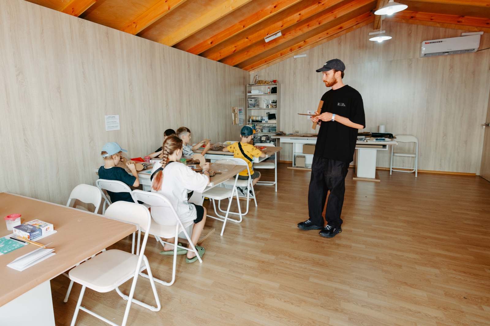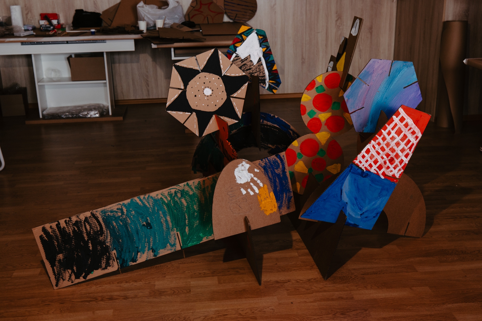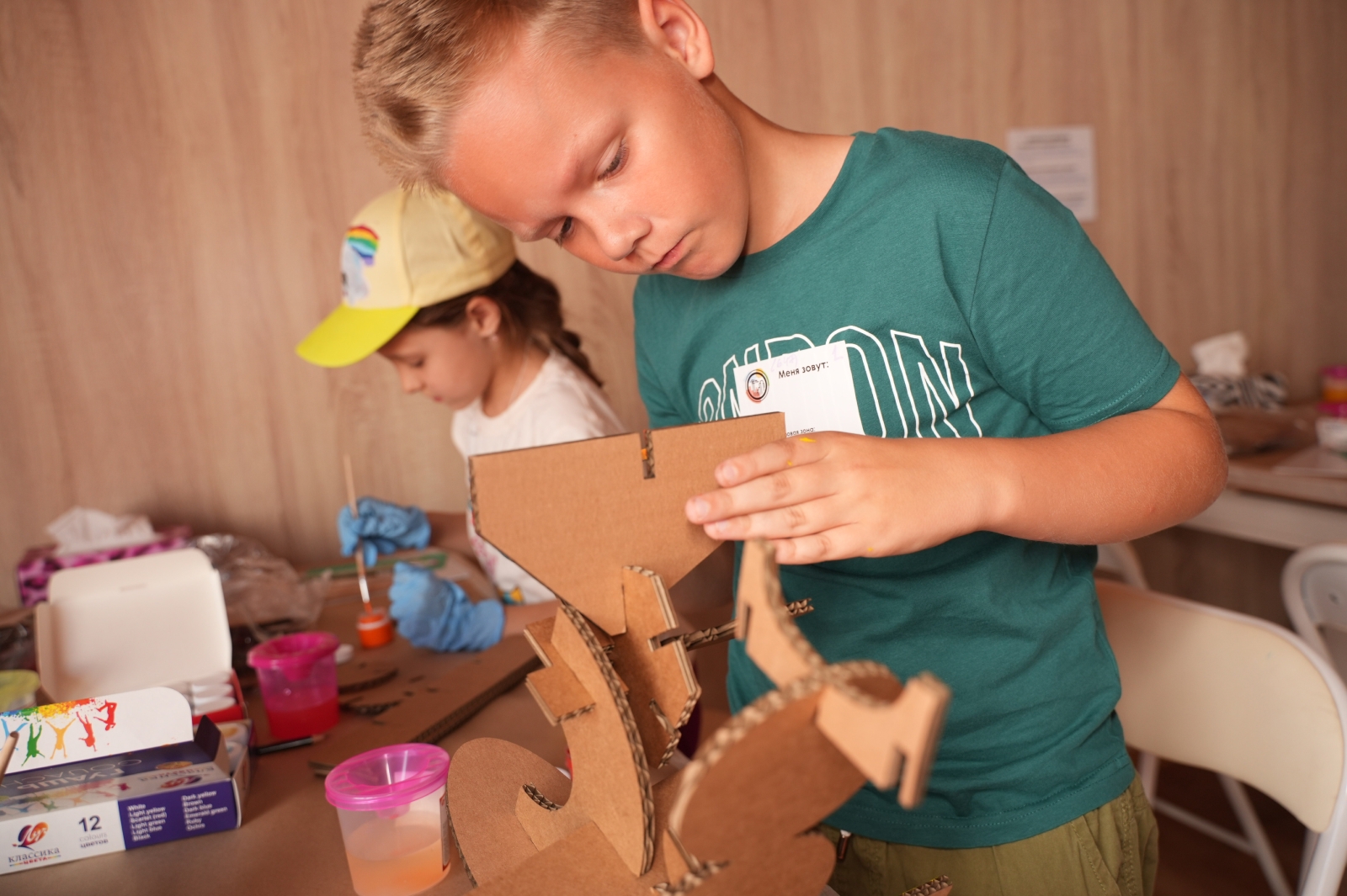 Специально для мастер-классов художник Владислав Дакес придумал лимитированную серию арт-скульптур из гофрокартона и принты к ним. Совместно с опытными художниками дети научились расписывать скульптуры и создавать собственные миниатюры. Участники узнали об этикете граффити, научились использовать разные художественные приемы.