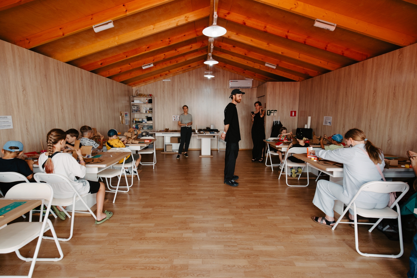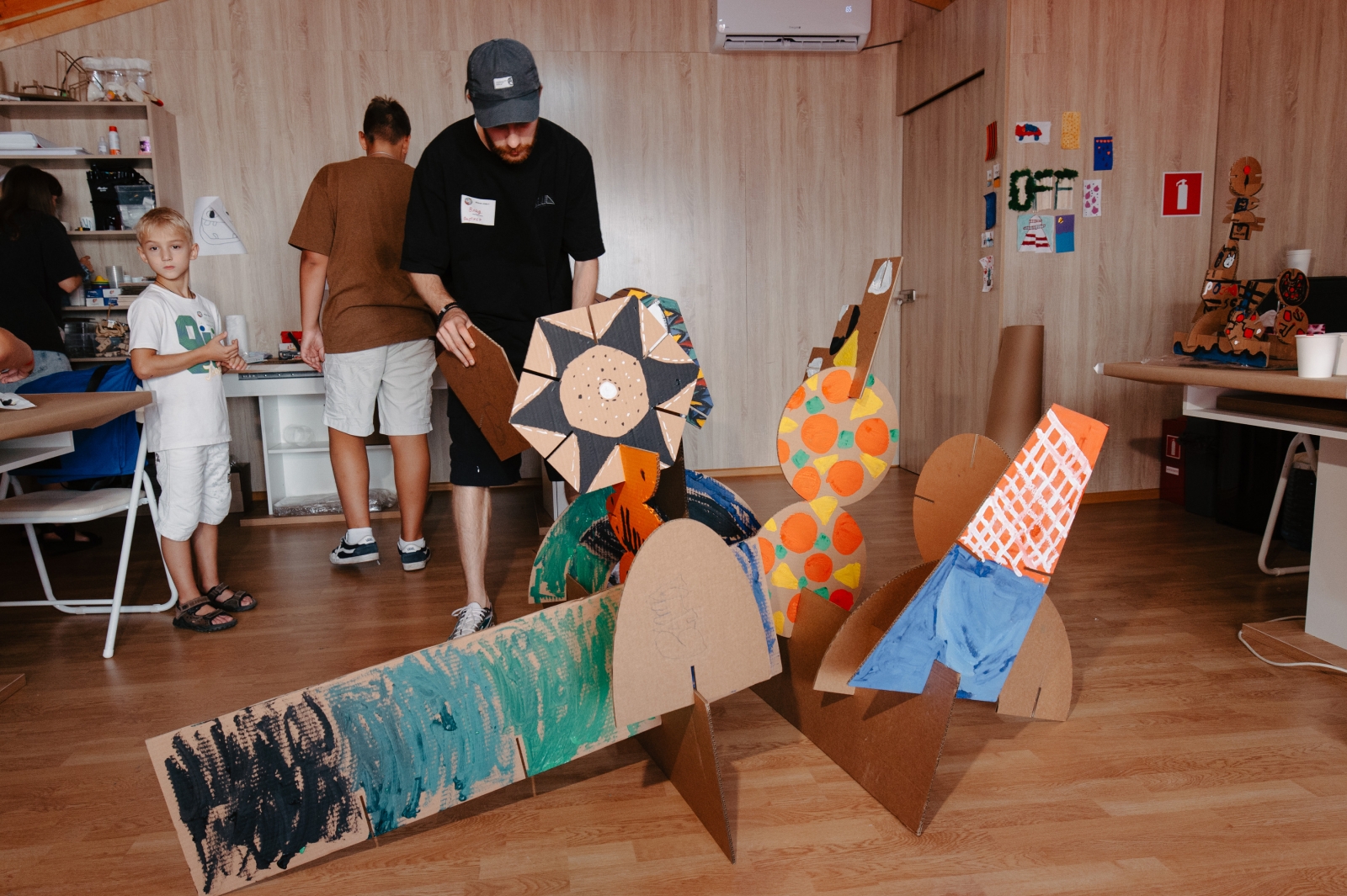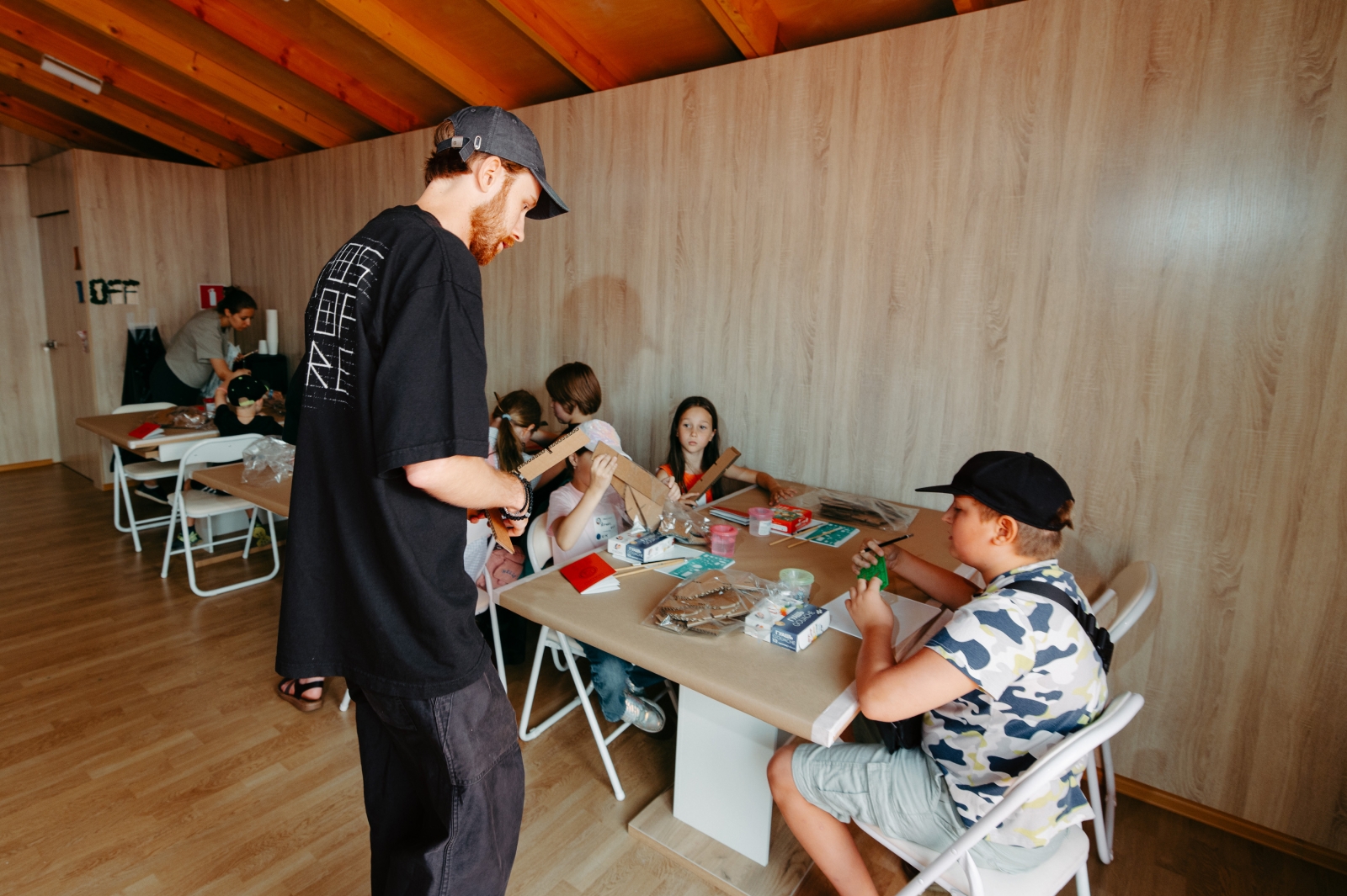 Специально для мастер-классов художник Владислав Дакес придумал лимитированную серию арт-скульптур из гофрокартона и принты к ним. Совместно с опытными художниками дети научились расписывать скульптуры и создавать собственные миниатюры. Участники узнали об этикете граффити, научились использовать разные художественные приемы.