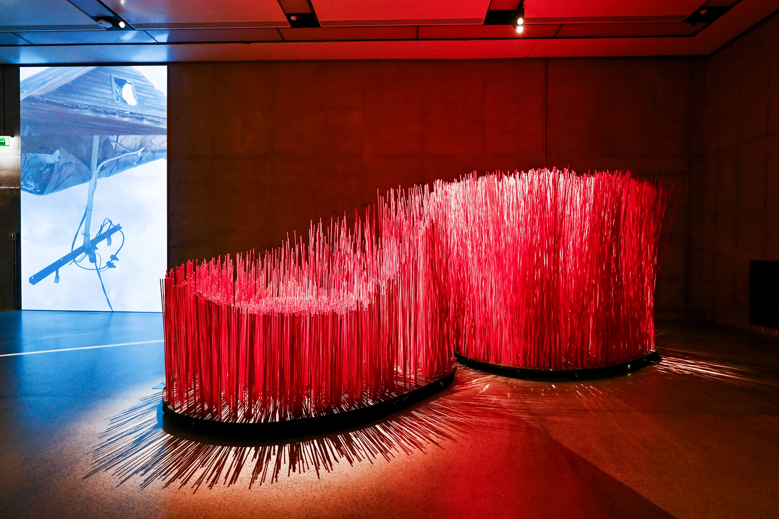 Для оформления границ куба пятиэтажного здания музея использованы медные пластины с минимальной обработкой, изготовленные по специальному заказу на Уральском горно-металлургическом комбинате. В медный каркас встроено крупноформатное остекление – высота некоторых стеклянных полотен достигает 6 м.