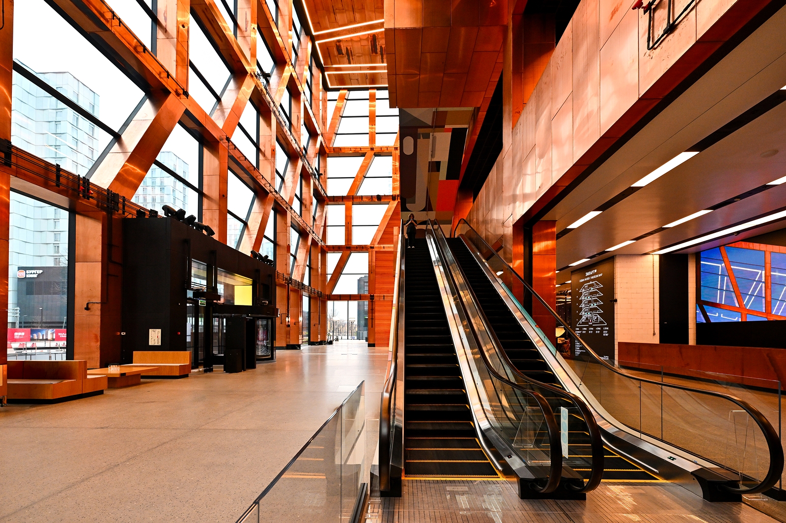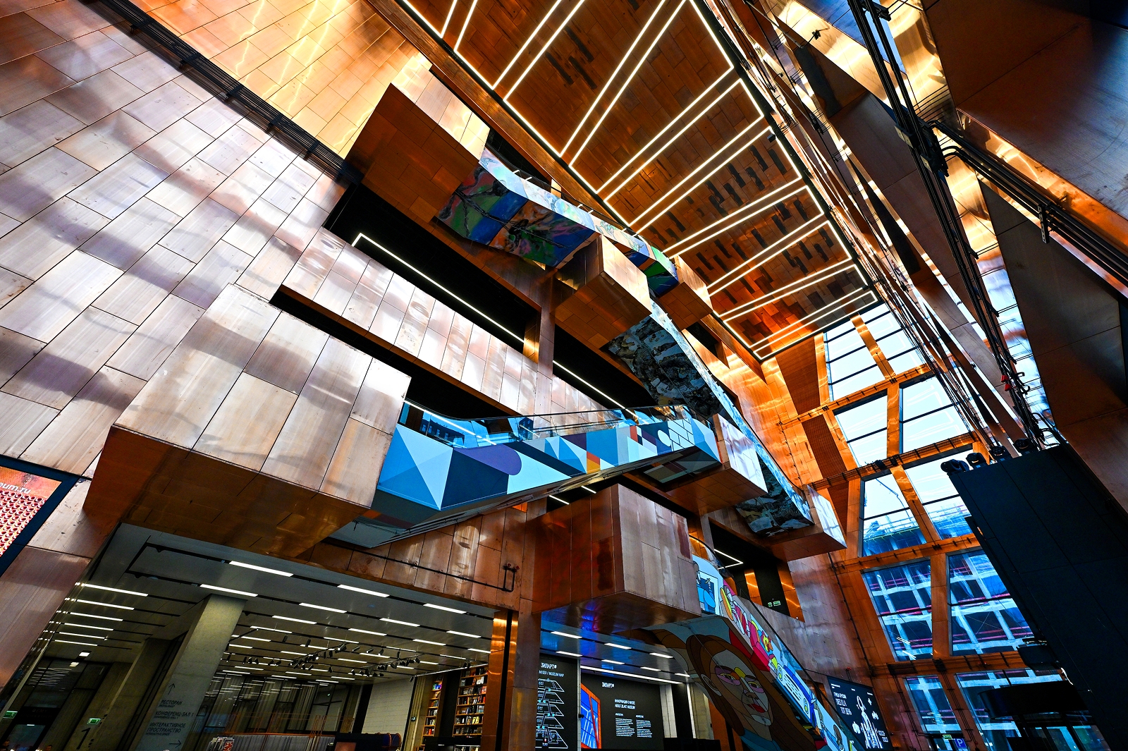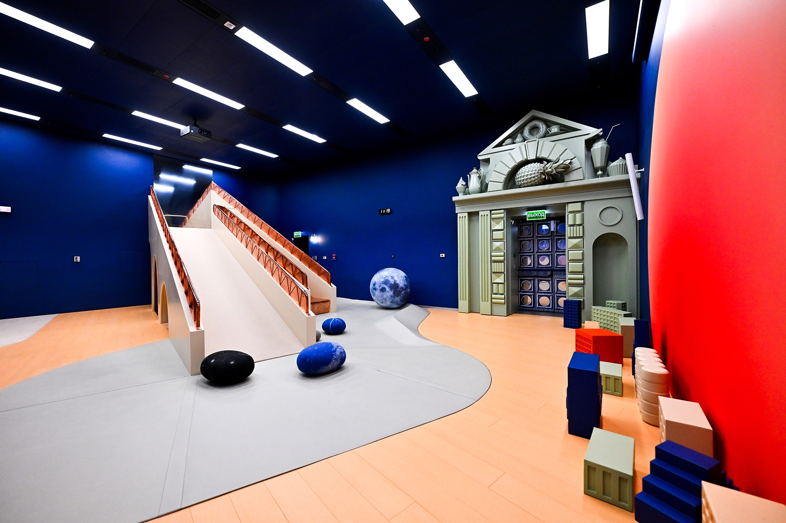 Первый этаж занимают зона билетных касс и гардероба, ресторан, музейный магазин, детская игровая площадка и конференц-зал на 95 мест.