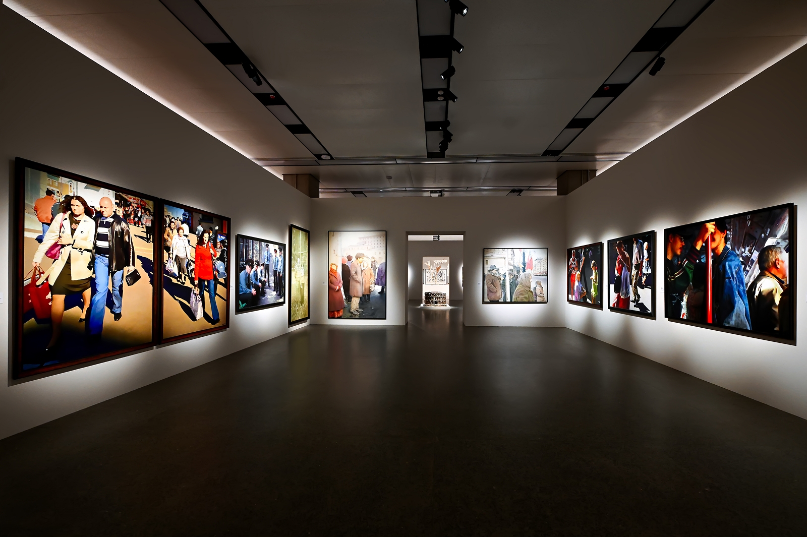 На этажах со второго по пятый располагаются выставочные пространства общей площадью более 5 тыс. кв. м. Здесь обустроены четыре зала-трансформера с оригинальными пятиметровыми медными входными дверями.