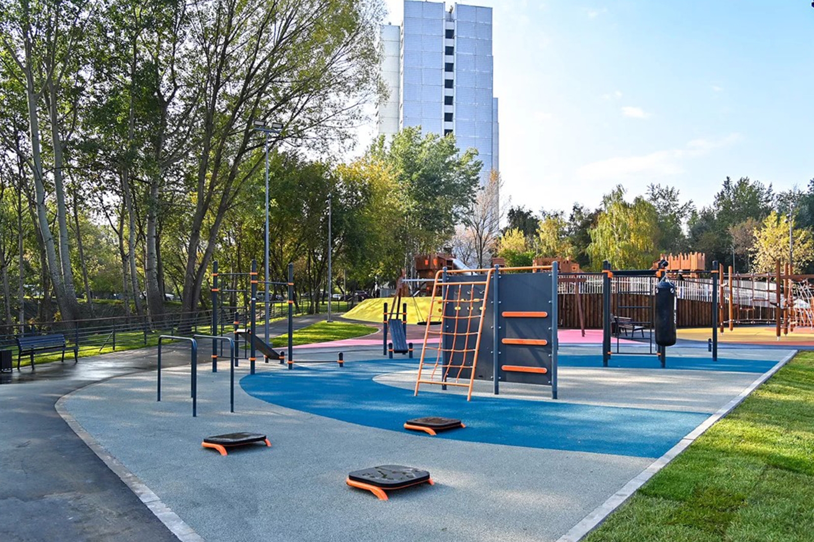 Помимо многофункциональной спортивной зоны, в парке разместились еще 14 площадок для игры в мини-футбол, хоккей, баскетбол, стритбол, волейбол, настольный теннис и для занятий воркаутом.