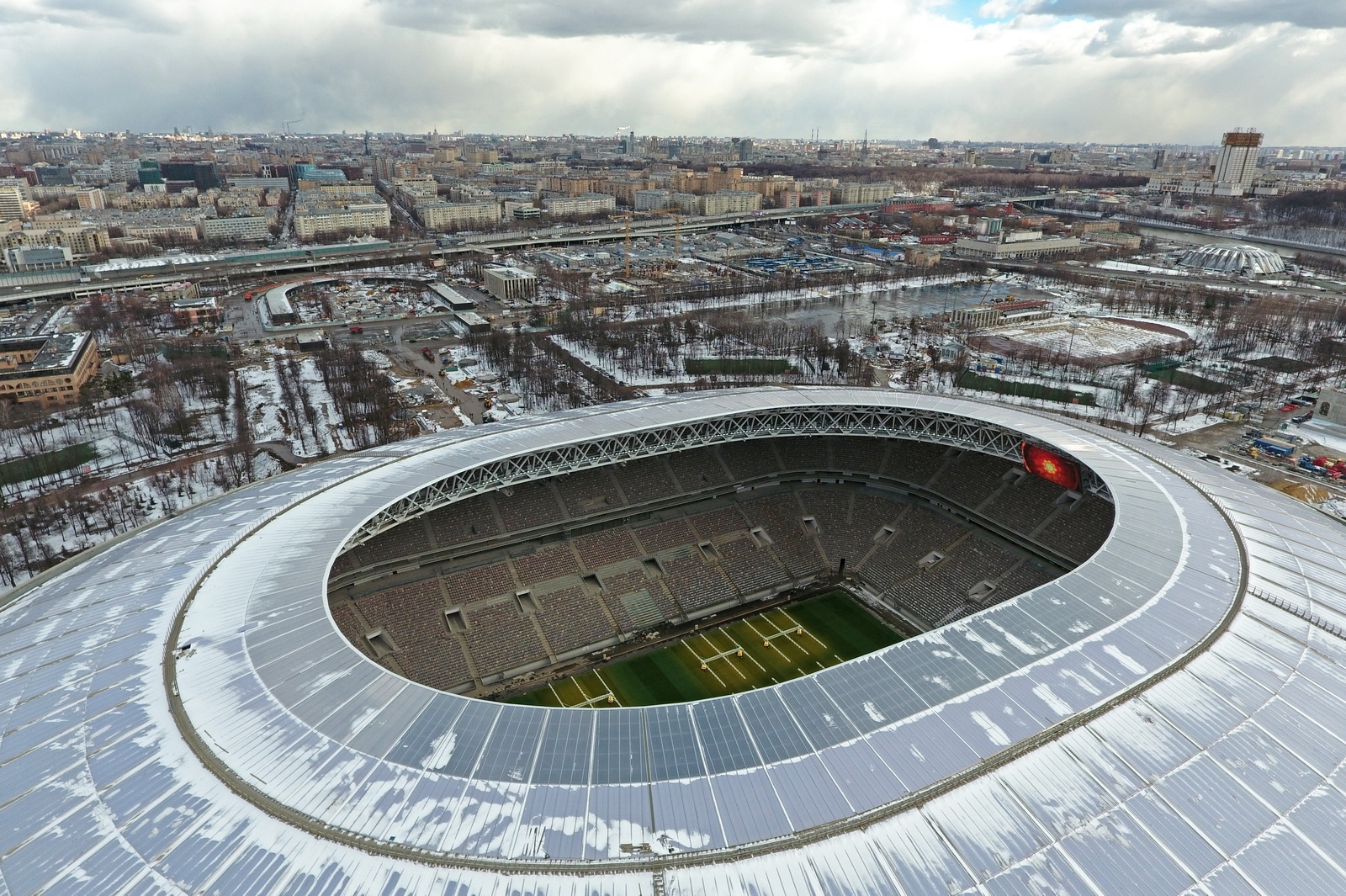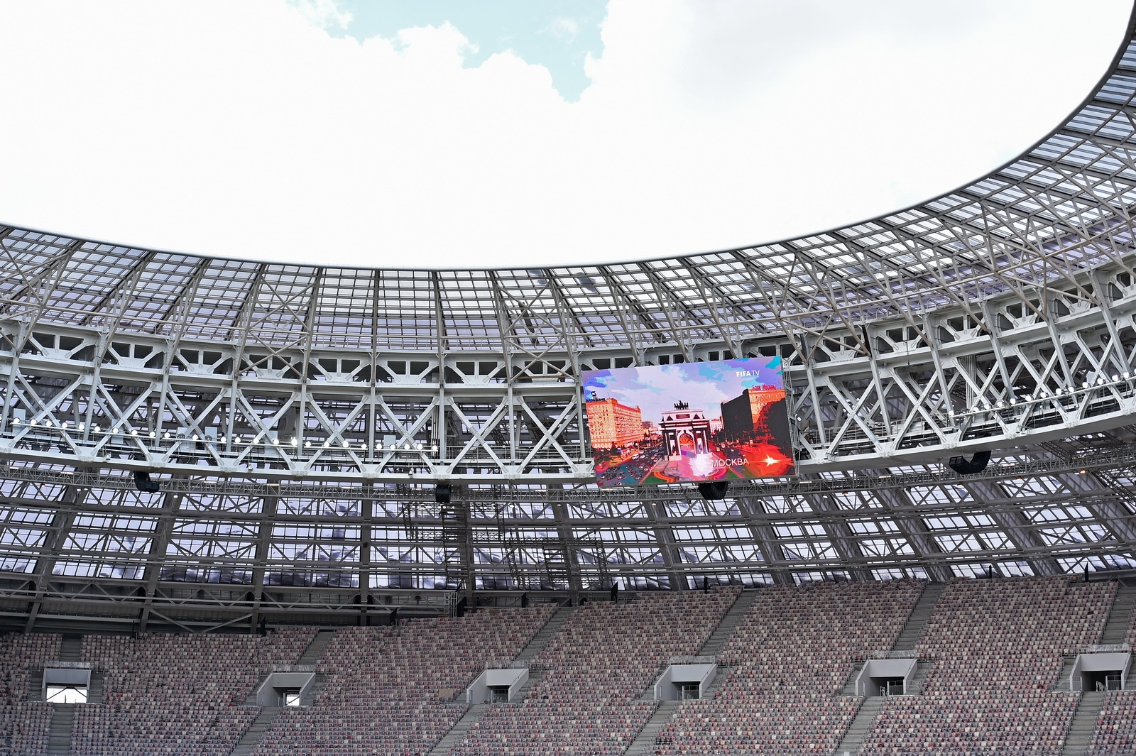 Медиаэкраны и искусственное солнце стадиона «Лужники» - в видеосюжете от stroi.mos.ru