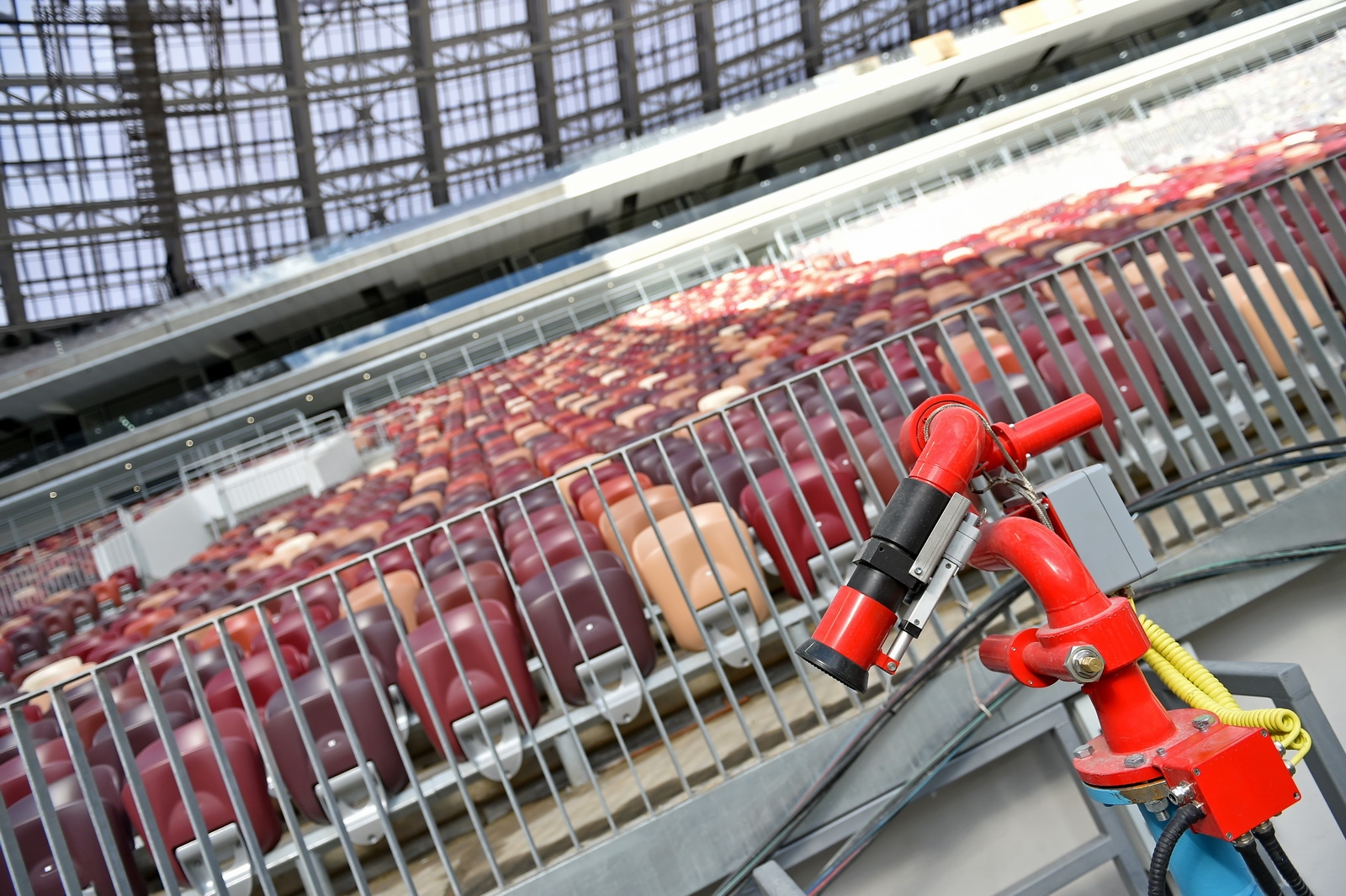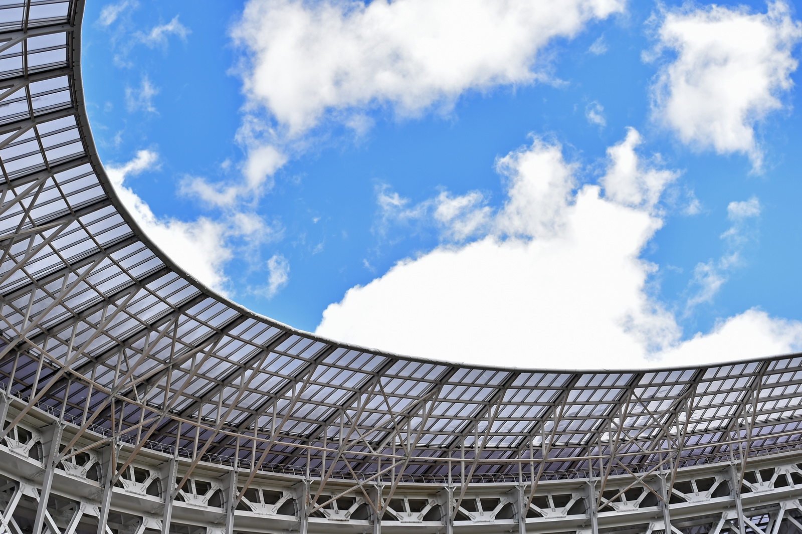 На крыше заменили поликарбонат и встроили туда светодиодные лампы. По сути, кровля «Лужников» превратилась в огромный медиаэкран для трансляции матчей.