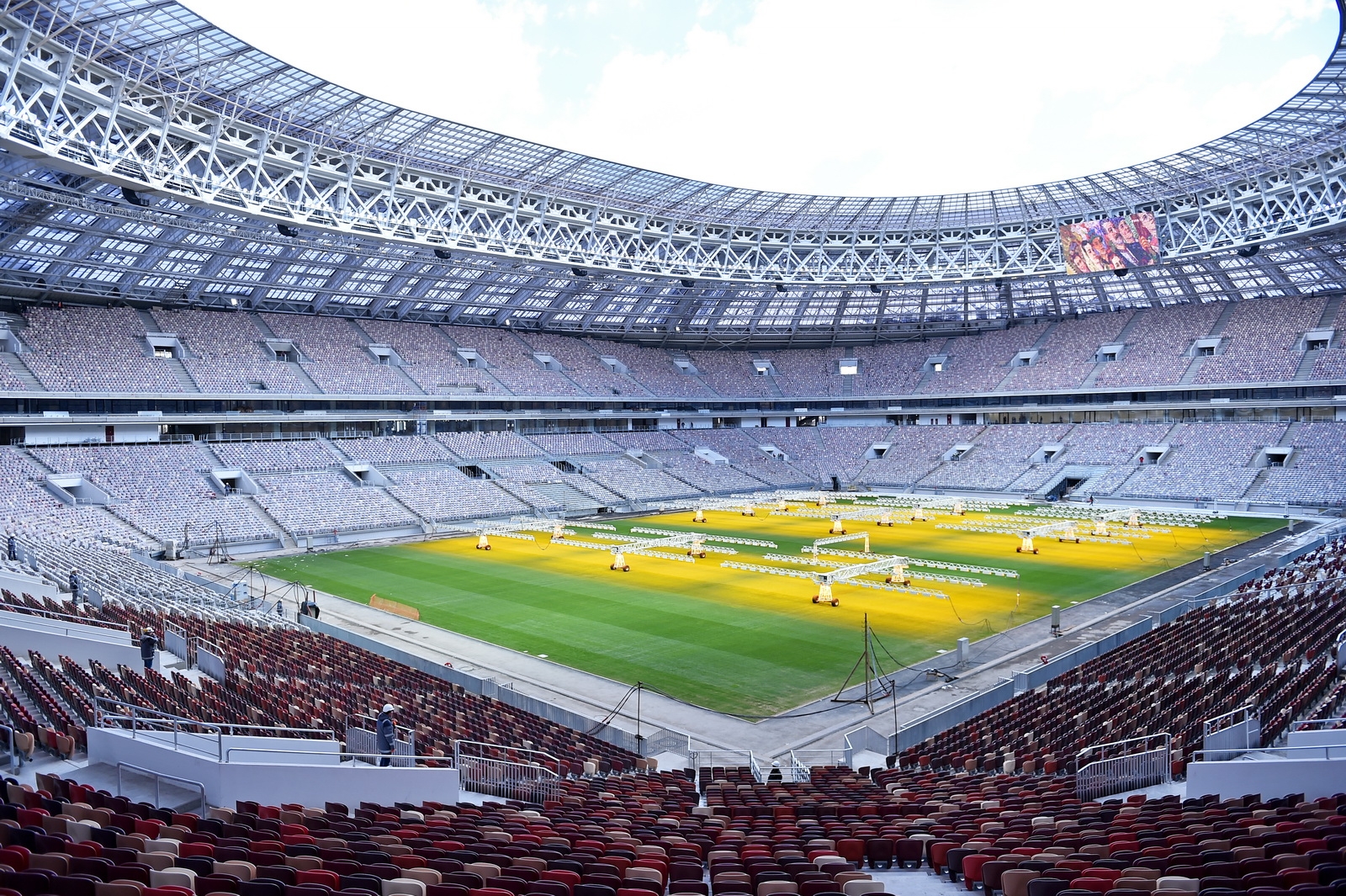 Как перезимовал травяной газон Большой спортивной арены «Лужники»? Зачем на стадионе искусственное солнце и как выглядят раздевалки для футболистов? Портал Стройкомплекса представляет эксклюзивный видеосюжет с высоты птичьего полета о подготовке главной спортивной арены страны к Чемпионату мира по футболу-2018.