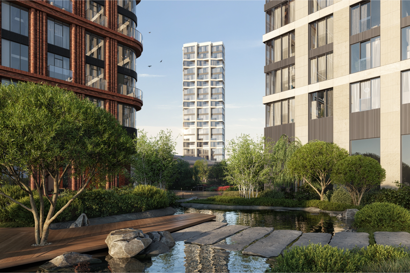 На территории жилого квартала «Тишинский бульвар» также появятся спортплощадки и прогулочный бульвар. Здесь обустроят водные объекты, в том числе пруды и сухой фонтан, высадят ивы, рябины, клены.